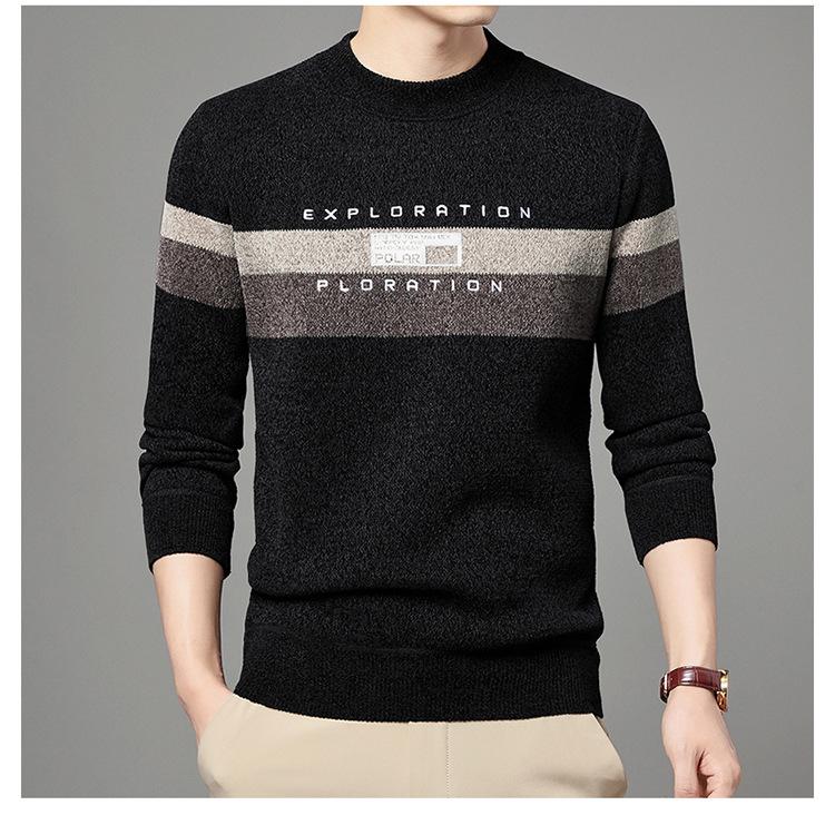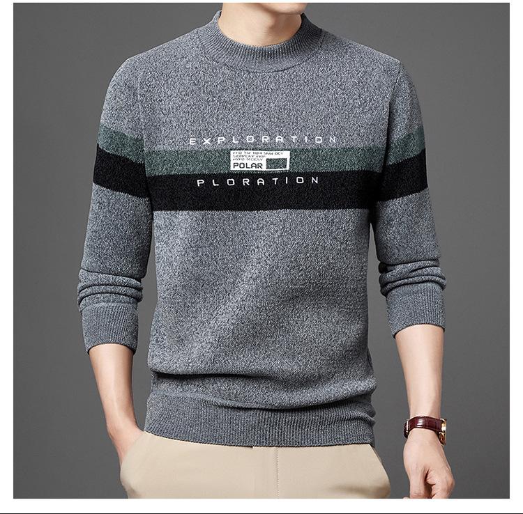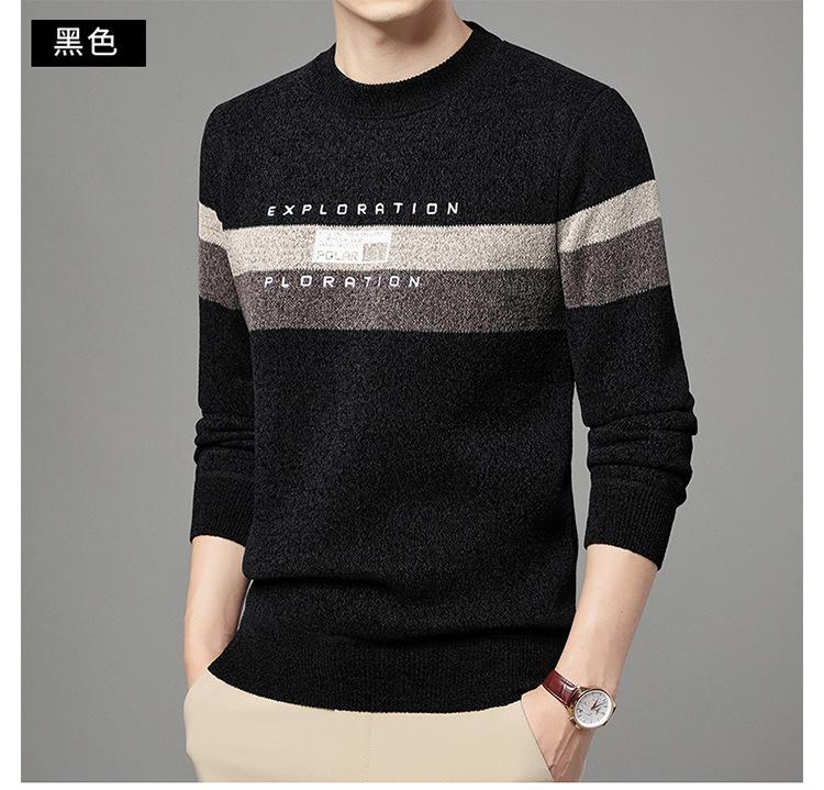 Suéter casual de otoño e invierno para hombre con cuello redondo, jersey, ropa para papá, color sólido, talla grande, punto para jóvenes, en stock