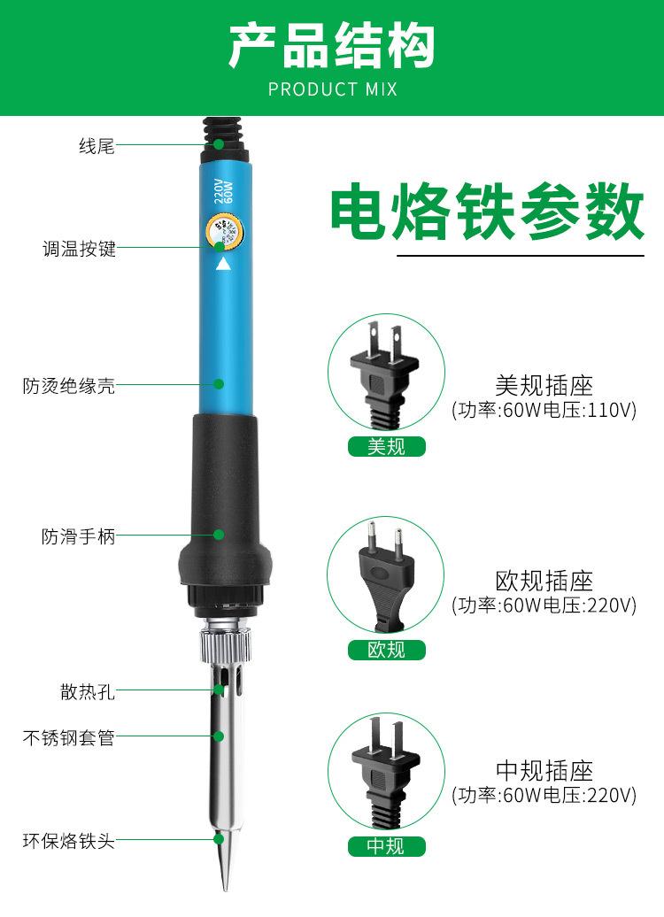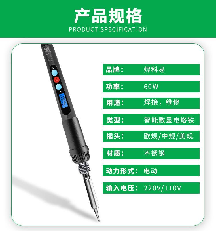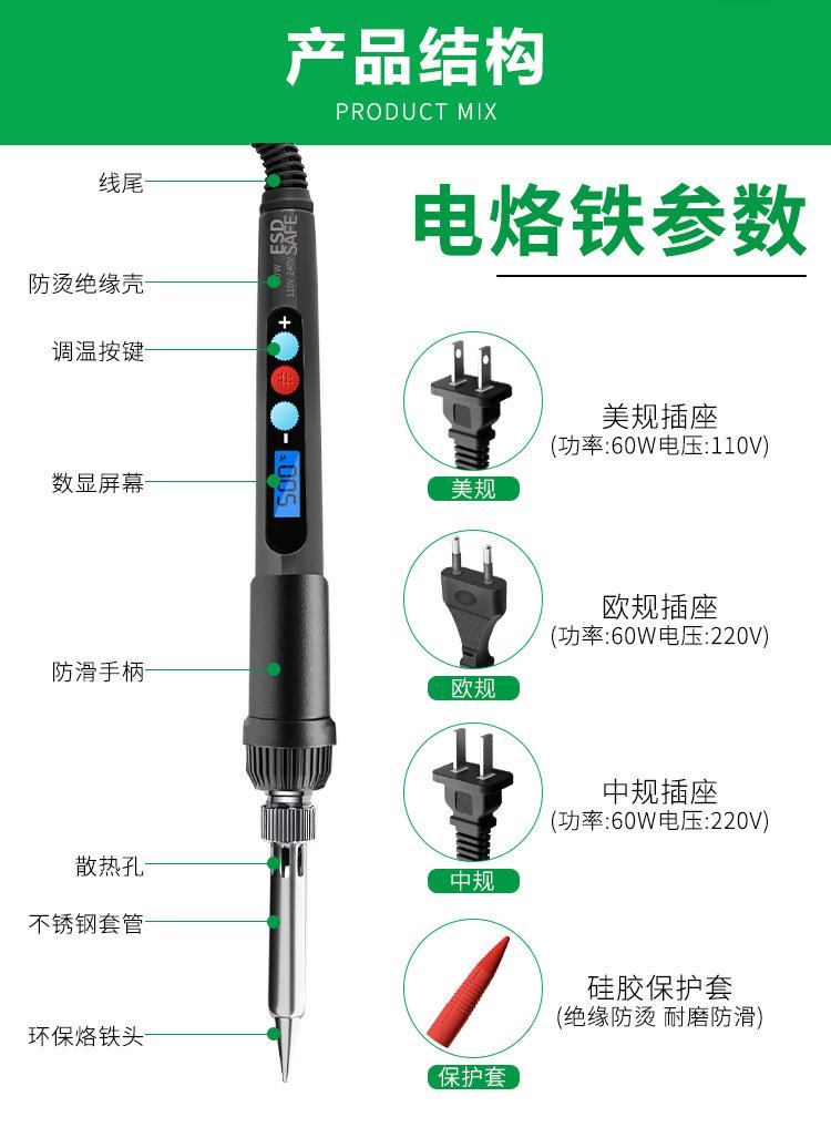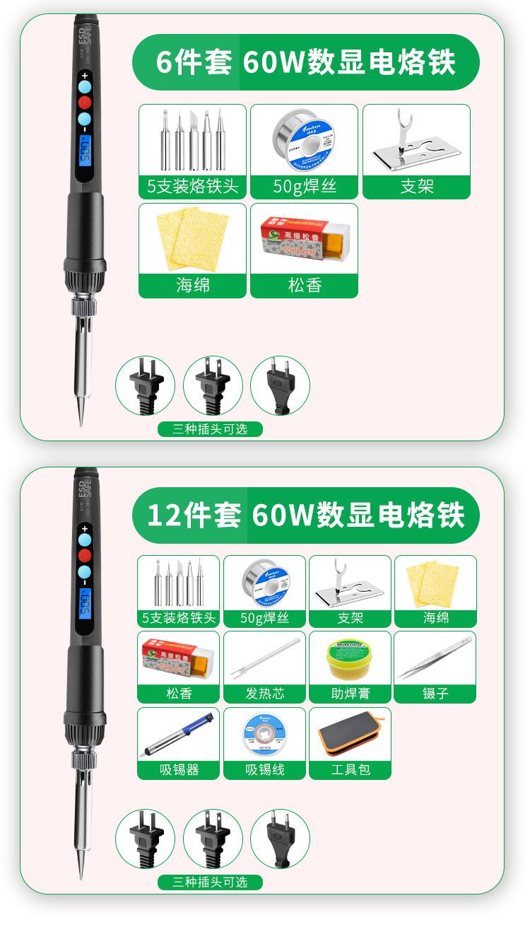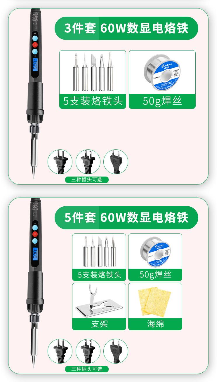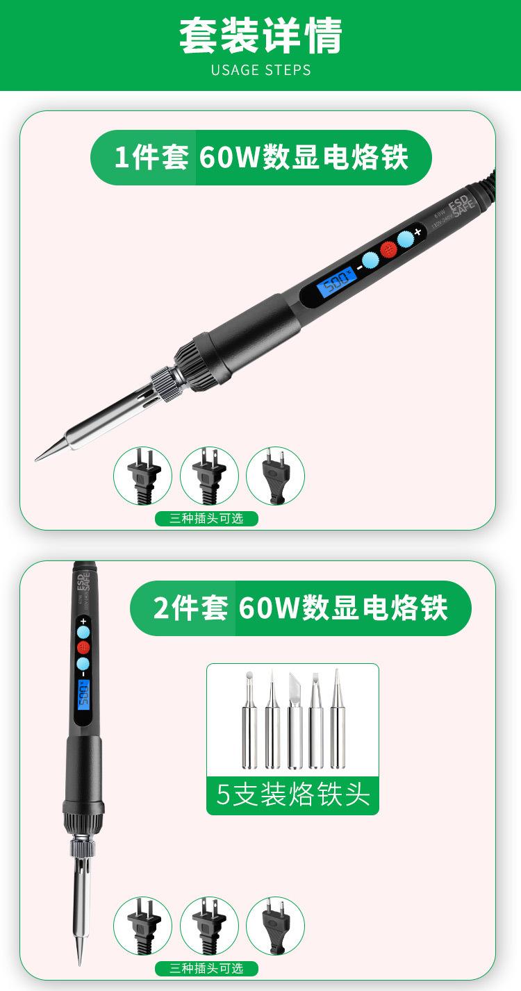 (2-piece Digital Display) European electric soldering iron (60W/220V): electric soldering iron +5-piece soldering iron head