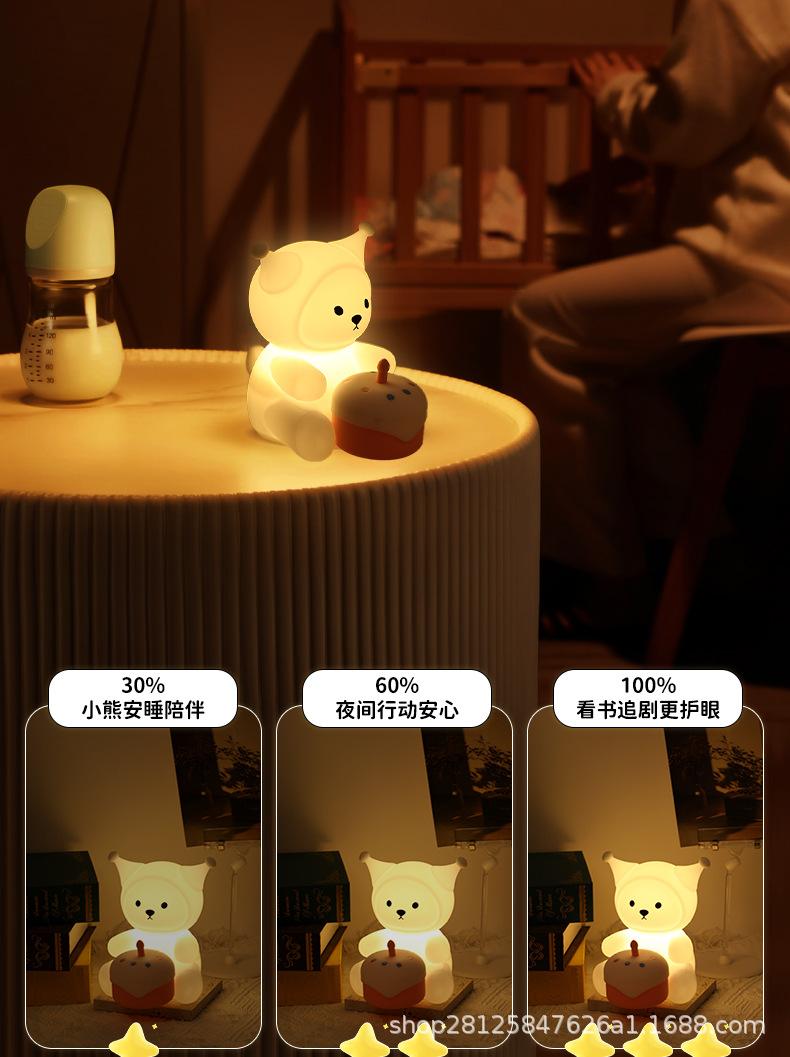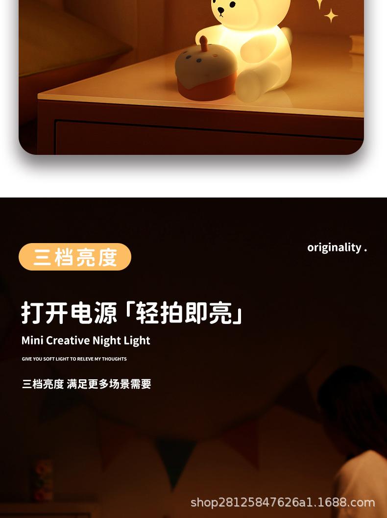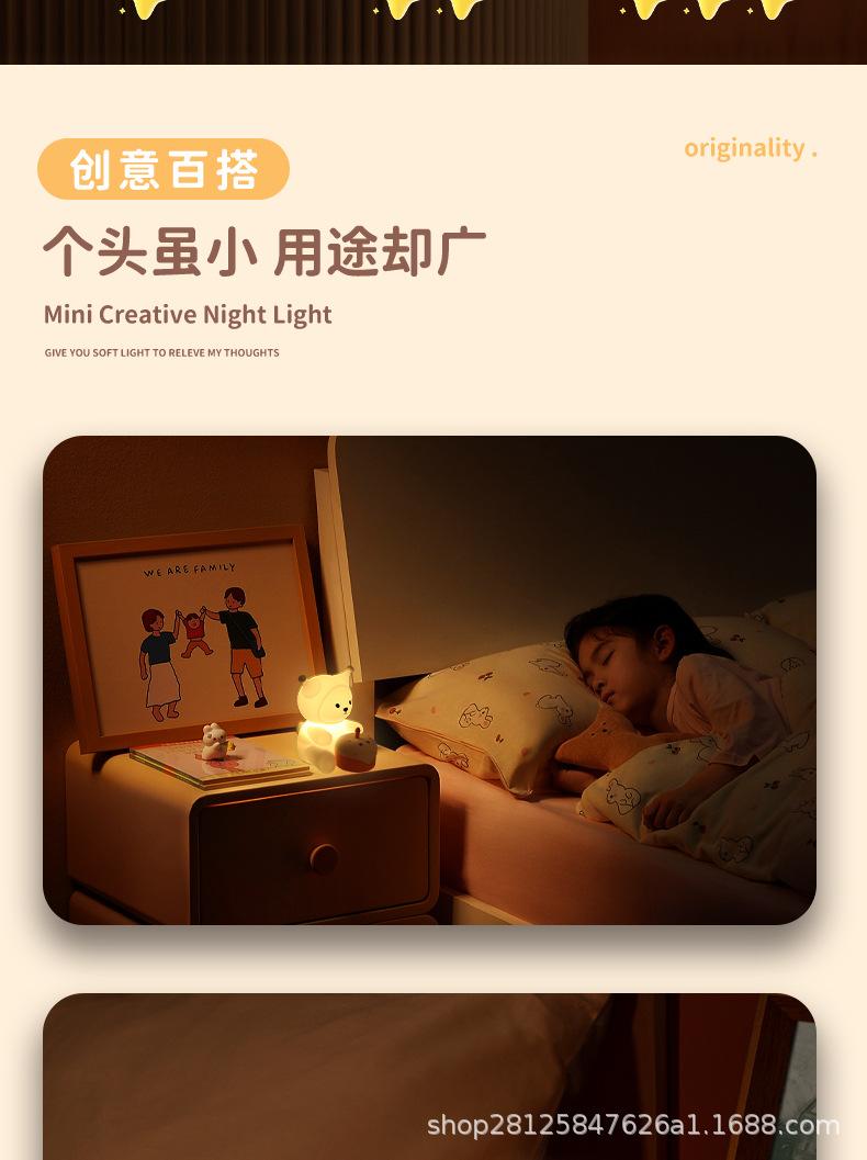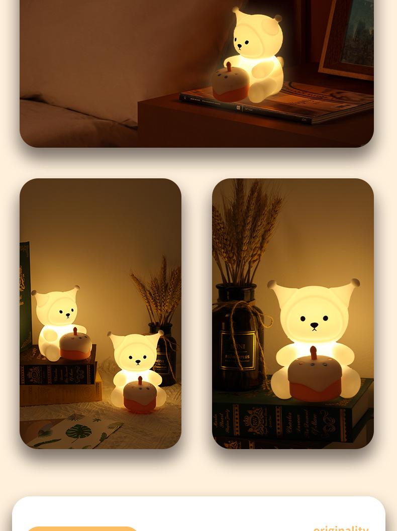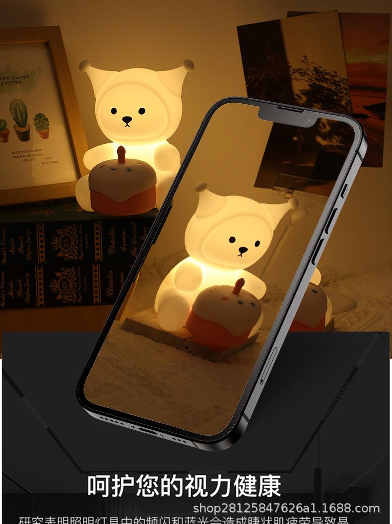 Luz de Noche Creativa Pat Light de Silicona Lámpara de Noche para Dormitorio Mesita de Noche para Cumpleaños de Novia, Luz de Ambiente Feliz, Regulable