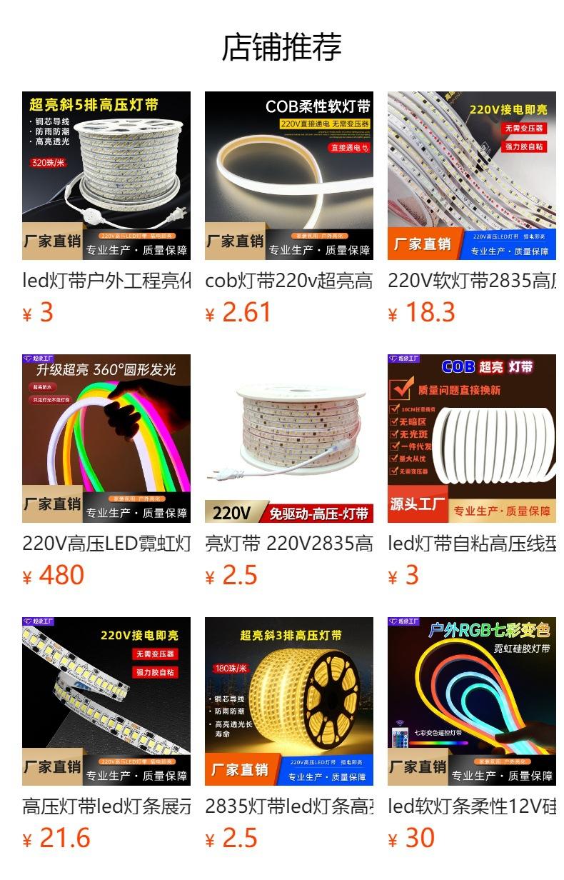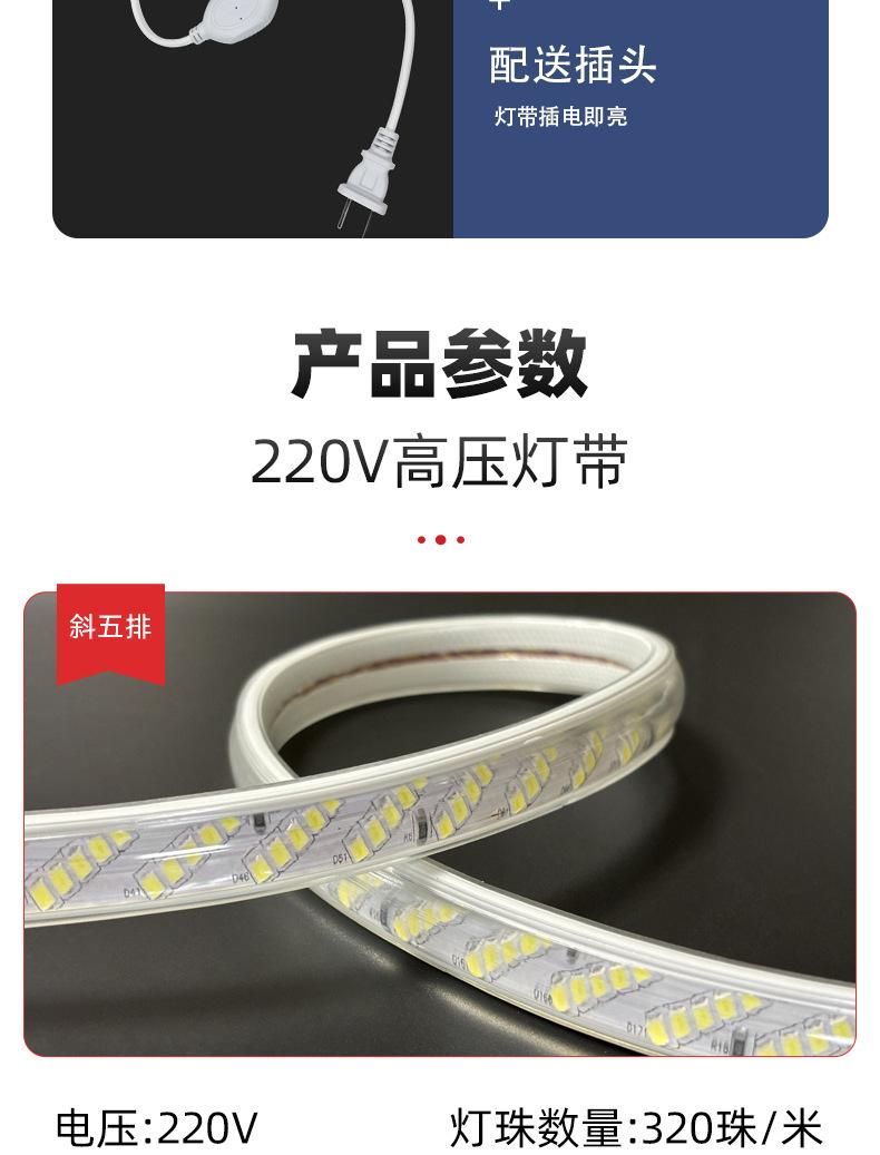 Tira de luz LED 2835 alto brillo exterior impermeable 220V interior sala de estar techo ambiente tira de luz de alto voltaje