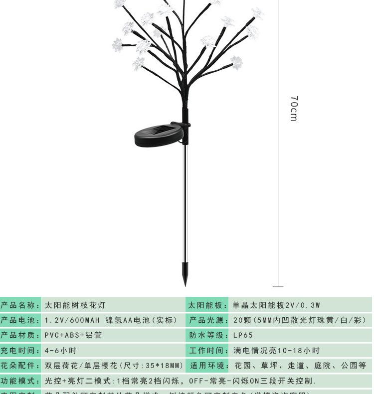 Compra Luces de cerezo en flor de rama solar transfronteriza Festival Guirnaldas Decoración Exterior Patio Jardín Villa Césped Luces de Flores Nuevo al por mayor en Joom.pro