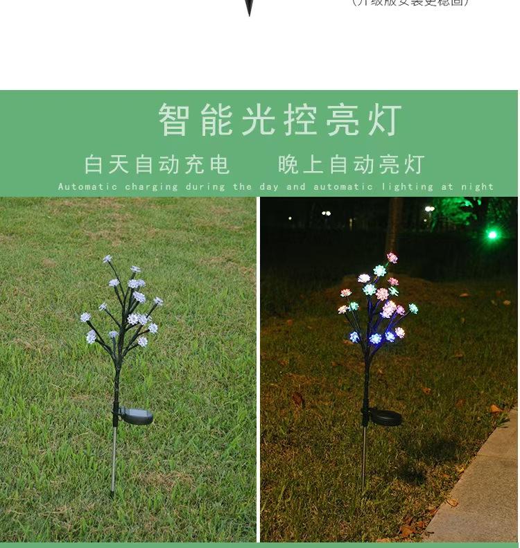 Luces de cerezo en flor de rama solar transfronteriza Festival Guirnaldas Decoración Exterior Patio Jardín Villa Césped Luces de Flores Nuevo