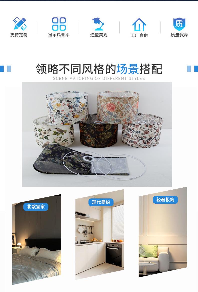 Pantalla de tela desmontable transfronteriza Pantalla KD Decoración de hotel B&B Estampado de patrones Lámpara de pie Lámpara colgante Lámpara de mesa Pantalla