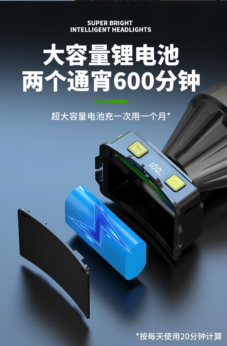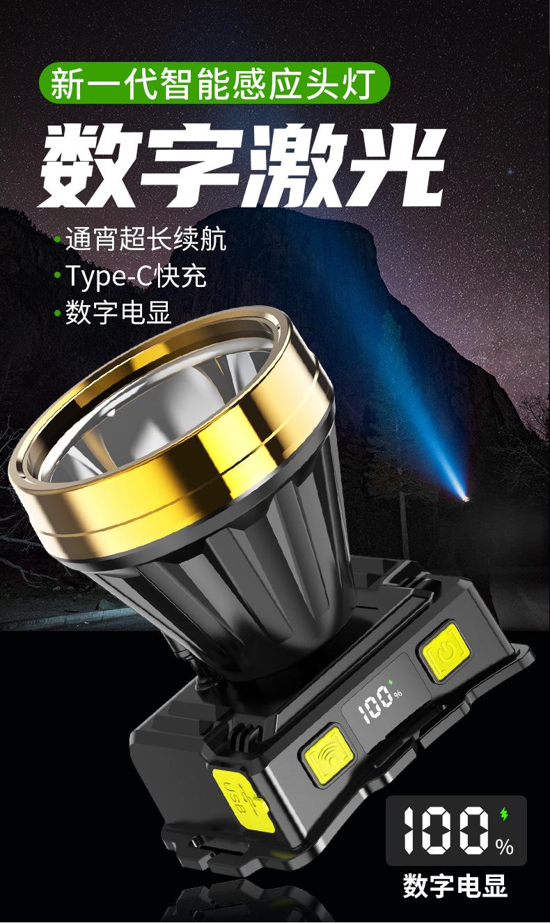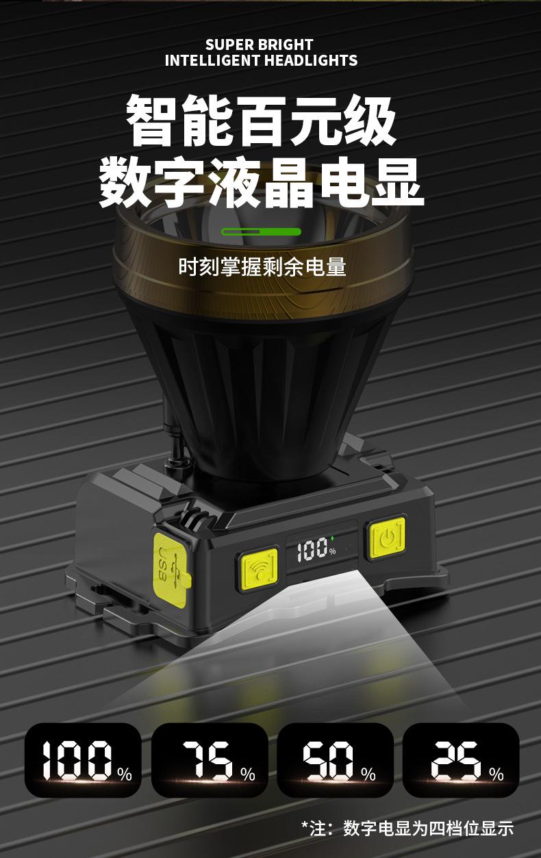 Nuevo faro LCD luz fuerte superbrillante carga Resistencia super larga lámpara de minero pesca nocturna linterna frontal inductiva