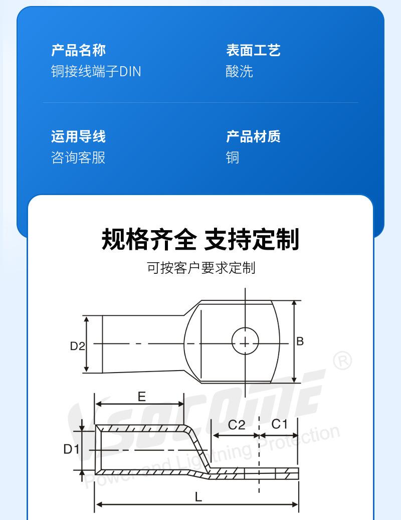 Terminales de Cobre Serie DIN Tipo Exportación Accesorios de Potencia Conector Terminal de Tubo de Cobre Extremo de Conexión de Alambre y Cable
