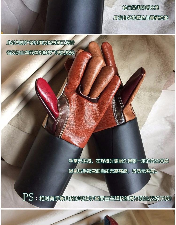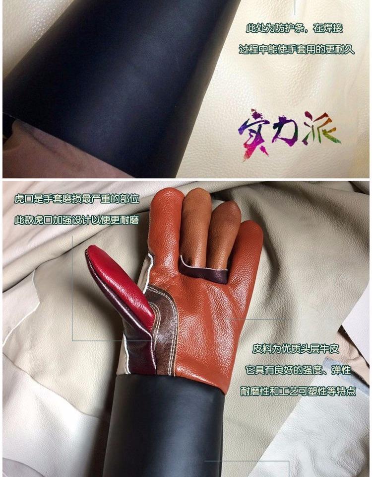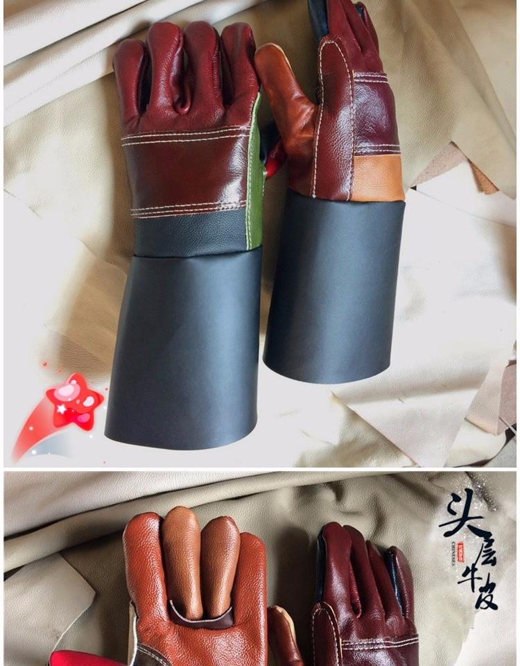 Guantes de soldador Guantes de soldadura de piel flor de vacuno Guantes de soldadura extendidos resistentes al desgaste Protección laboral Protección para mano izquierda y mano derecha