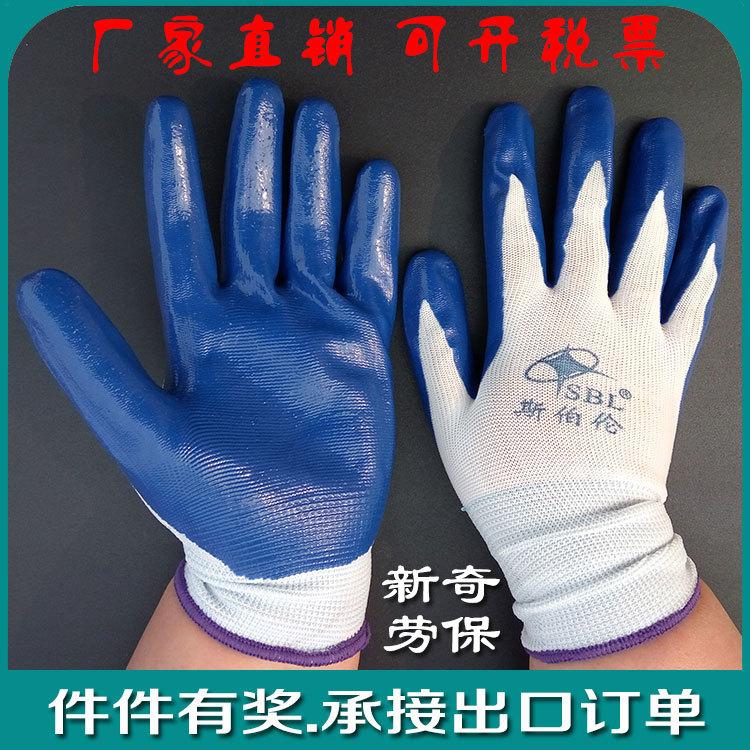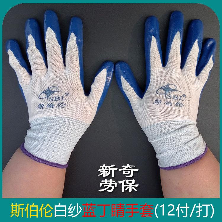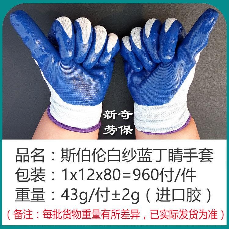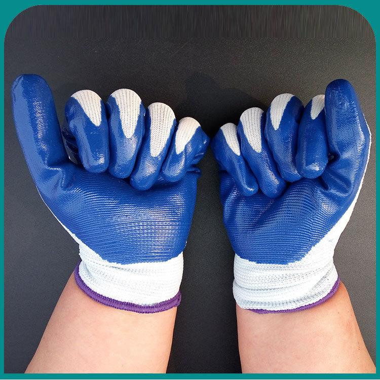 【Abreviatura Alias】:Guantes de nitrilo azul de hilo blanco de trece agujas/Guantes de trabajo para protección laboral;