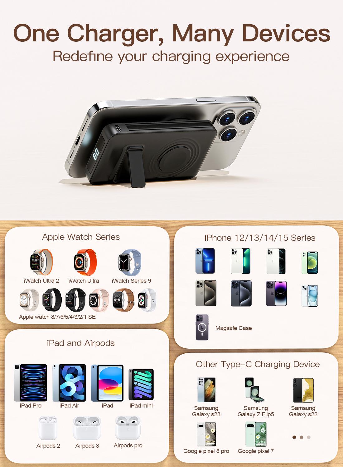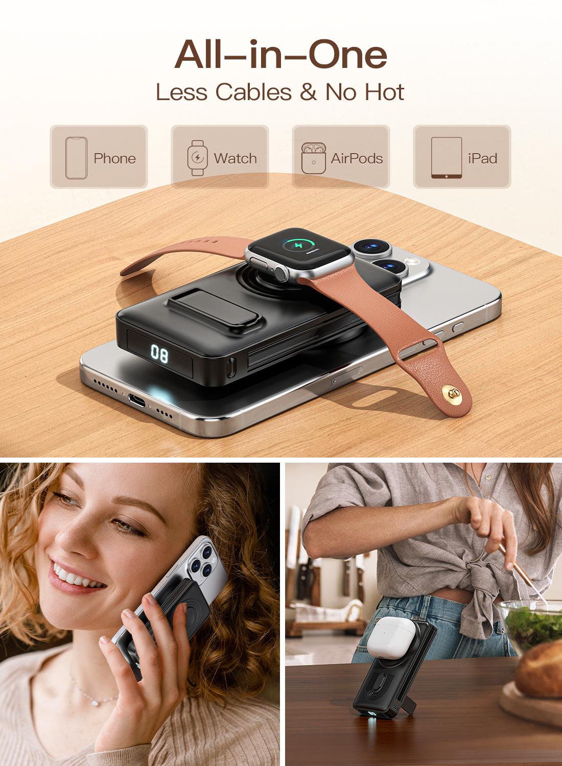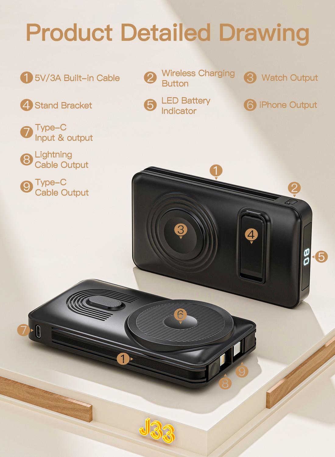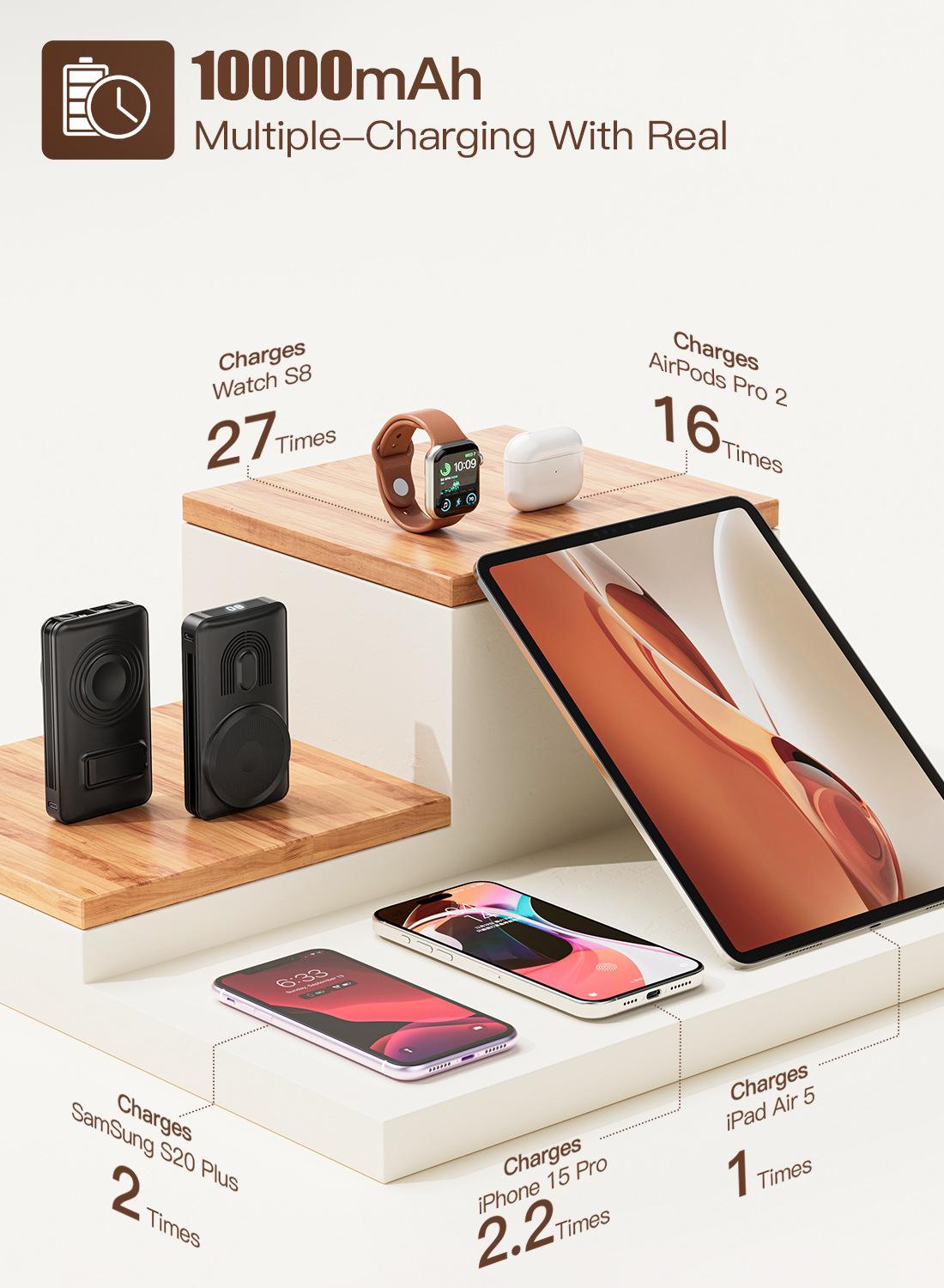 Batería externa inalámbrica magnética transfronteriza de carga rápida 10000 mA de gran capacidad tres en uno portátil