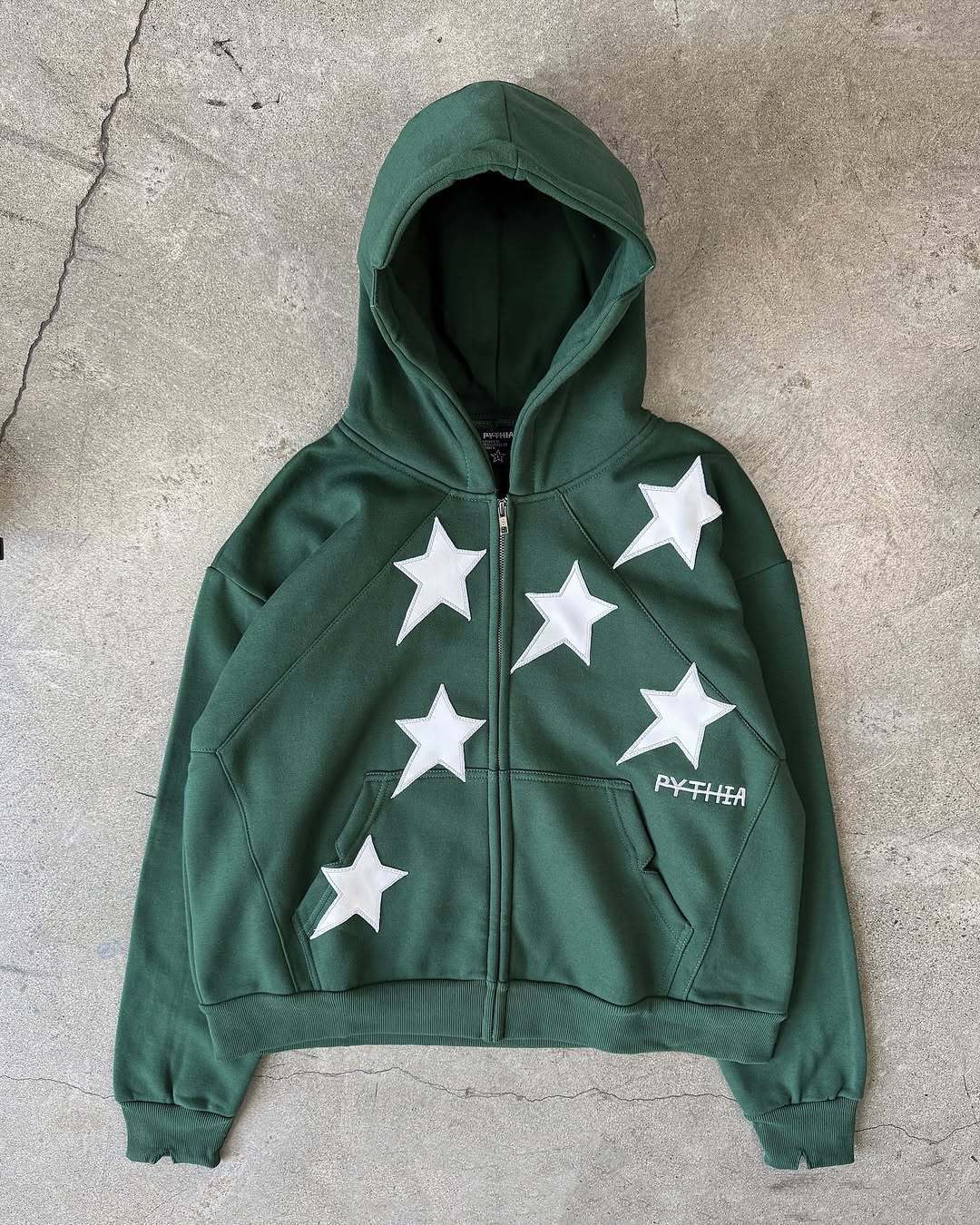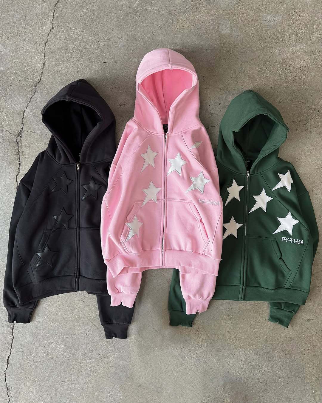 Otoño/Invierno 2025 Nueva Personalidad Calle Suelto Tendencia para Hombre y Mujer Sudadera Casual con Capucha y Cárdigan con Estampado de Estrella al por Mayor