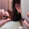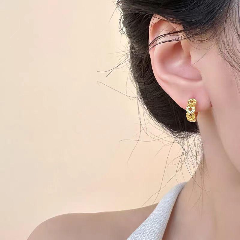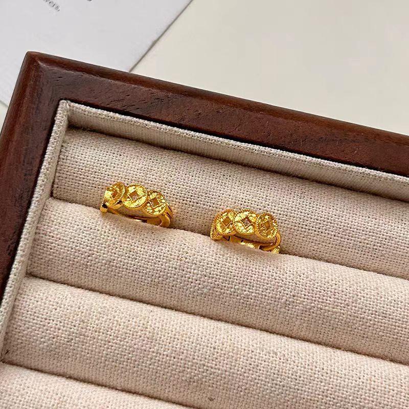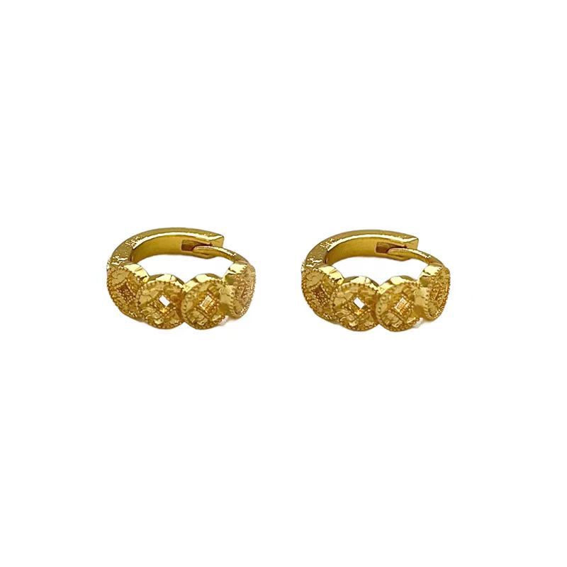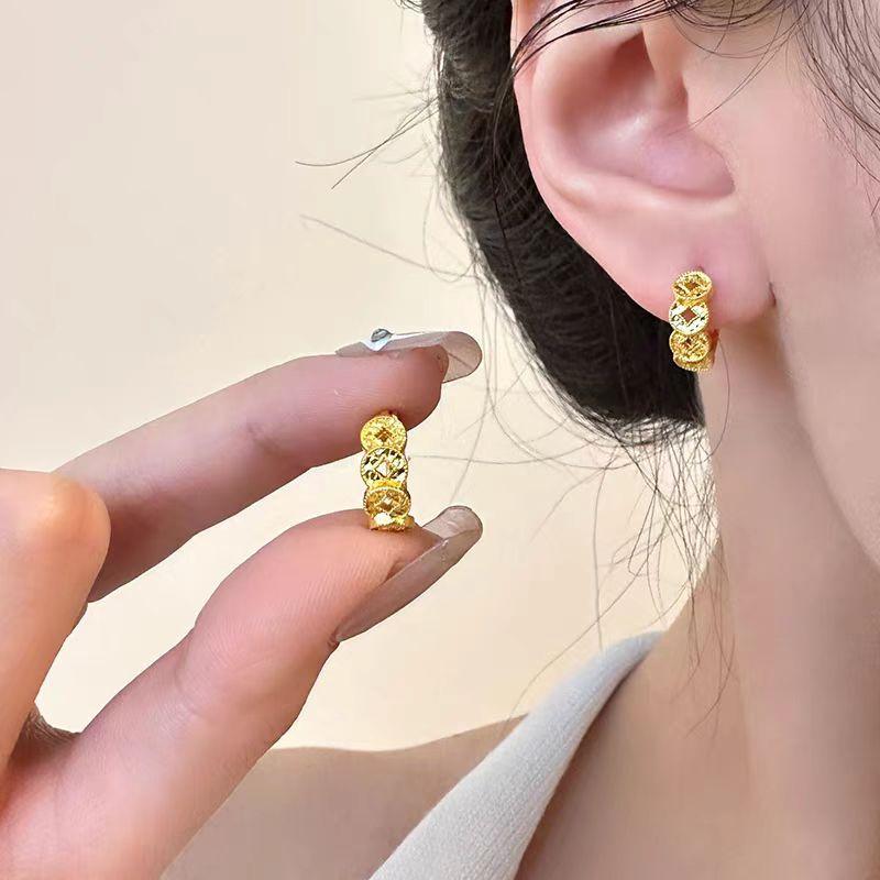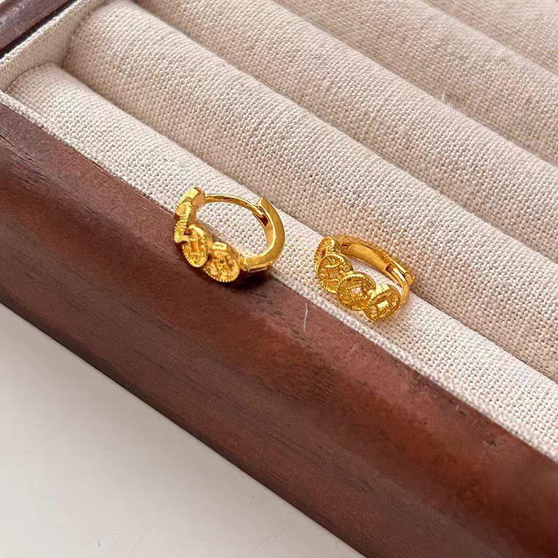 Aretes de puño para la oreja con moneda dorada para mujer, diseño de nicho, sentido de alta gama, temperamento de lujo ligero, aretes versátiles, moda, joyería simple para la oreja, aros para la oreja