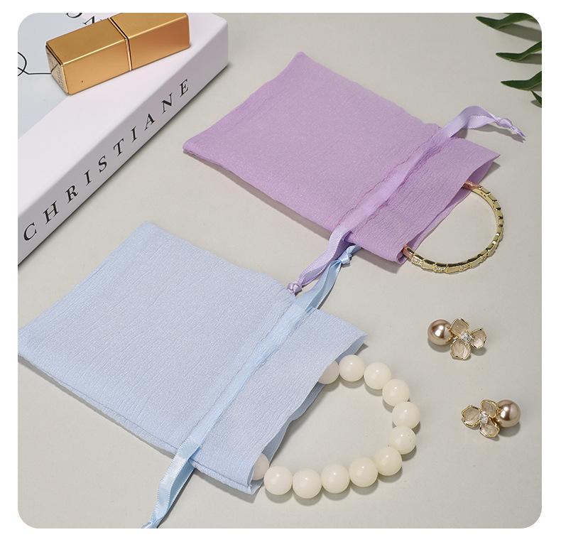 Fabricante Venta al por Mayor En Stock Bolsa de Gasa Color Sólido Embalaje de Regalo Bolsa de Malla Cosméticos Joyería Joyería Bolsa con Cordón