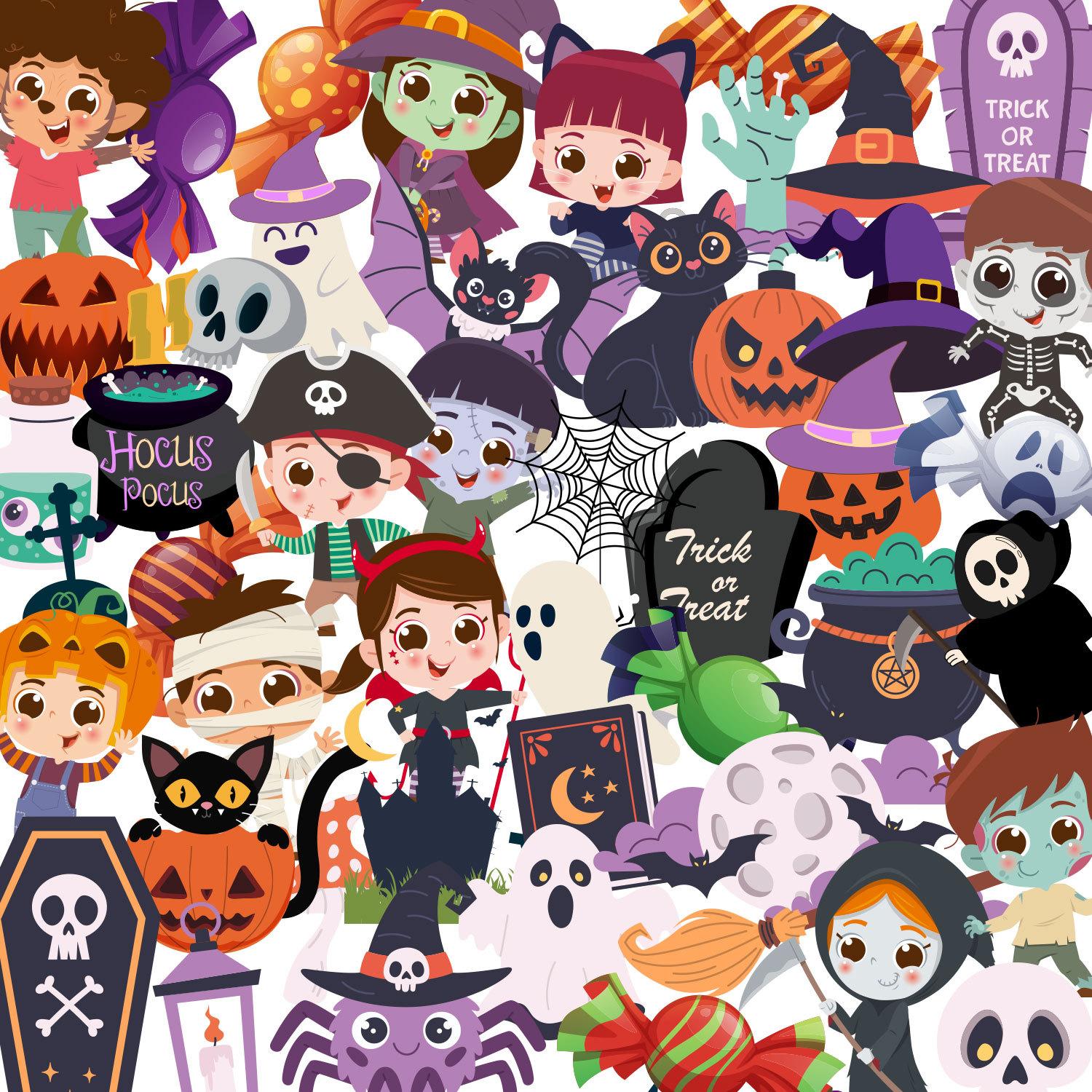 53 hojas/set Paquete de Stickers Graffiti de Terror de Halloween Dibujos Animados Cuenta de Mano DIY Material Stickers PVC Stickers Autoadhesivos