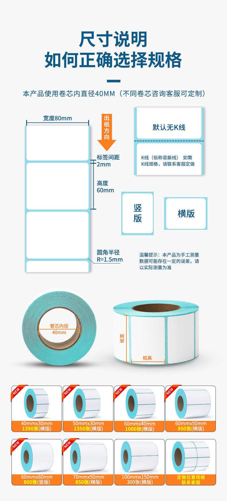 Cantidad Extra Papel Térmico Tres-Pruebas Etiqueta Adhesiva 60x40 50x30 60 70 80 90 Precio Papel para Impresión de Código de Barras