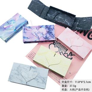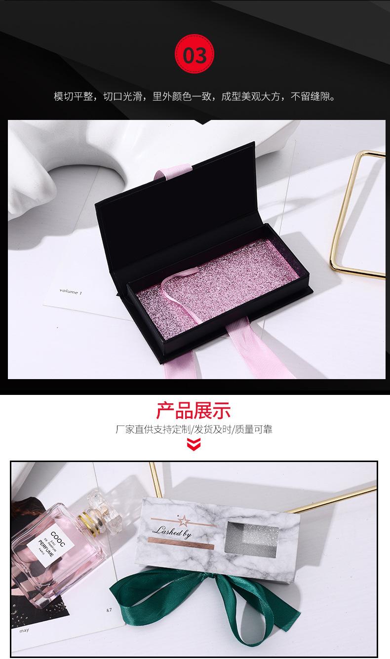 Caja para pestañas postizas hecha en fábrica, embalaje para pestañas postizas, estampado de mármol con estampado dorado, ventana más lazo de mariposa, caja para pestañas postizas