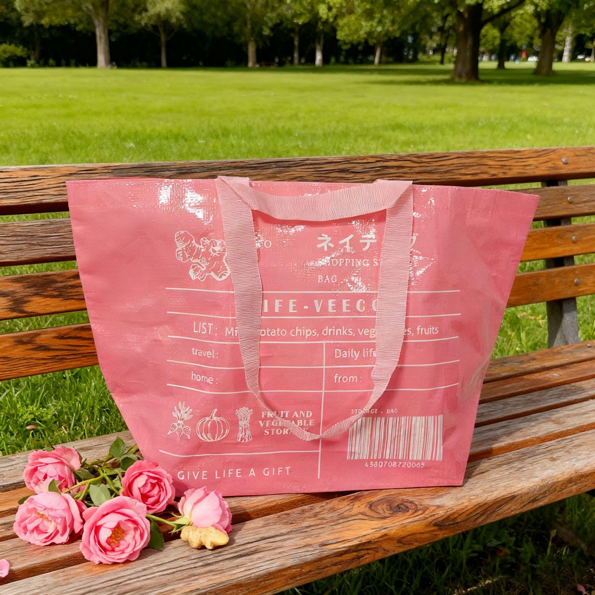 Compra Bolsa de Almacenamiento de Mano Tejida de PP Rosa Bolsa de Regalo para Tienda de Ropa Bolsa Tote Plegable para Supermercado para Compras de Niñas al por mayor en Joom.pro