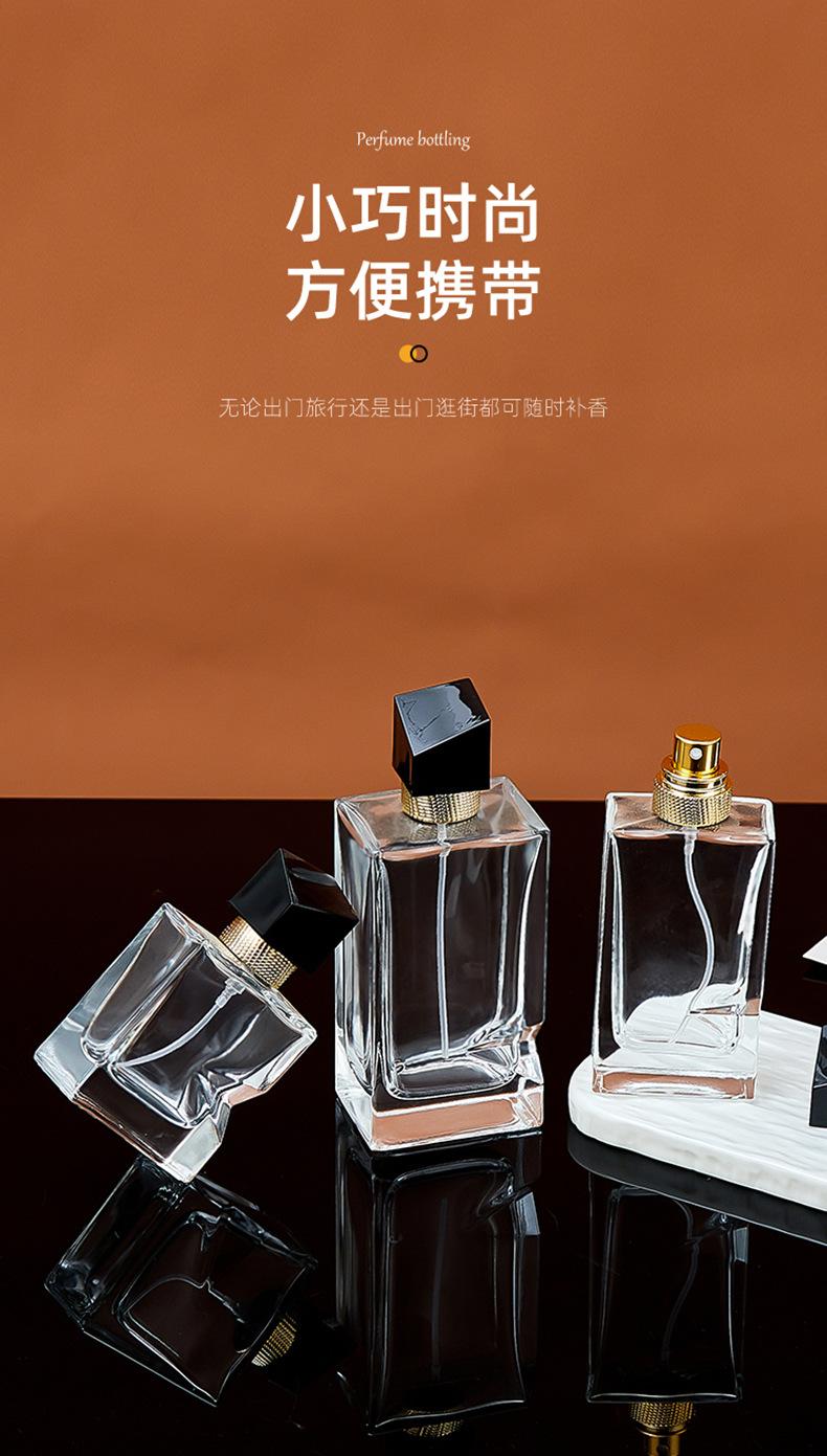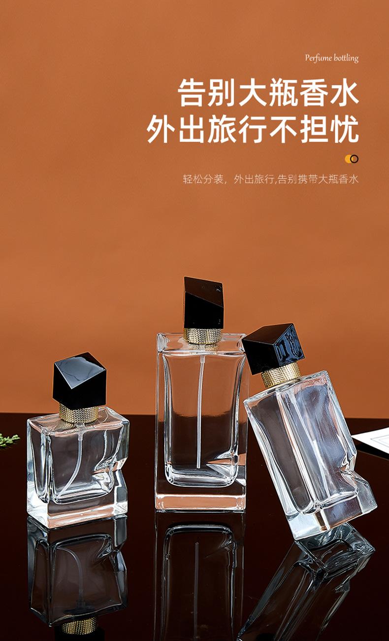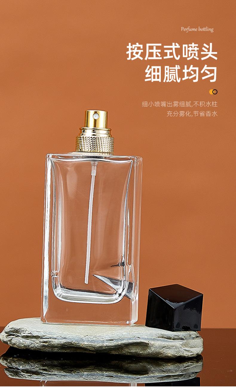 Botella de Perfume Transparente Botella de Spray a Presión Cuadrada Plana Botella Vacía Botella Dispensadora de Muestras Cosméticas Botella de Spray de Vidrio Engrosado