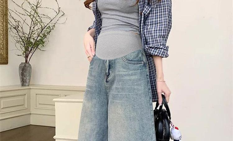 Shorts de mezclilla de maternidad para mujer, estilo delgado de verano, nuevo casual de talla grande recortado holgado adelgazante de pierna ancha, 2025
