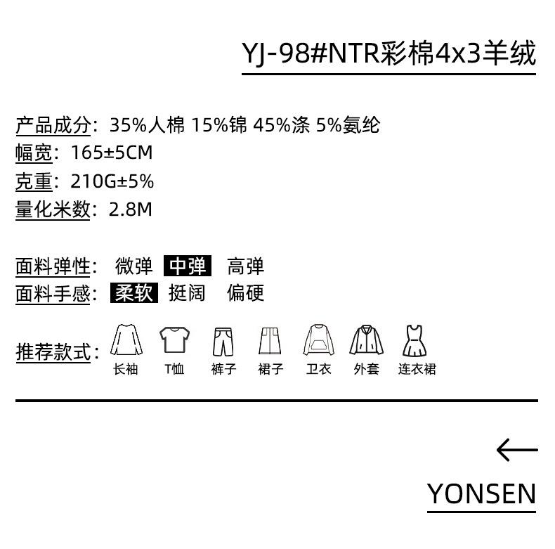 Ntr Algodón de Color 4X3 Tejido Cachemira Poliéster Rayón Nailon Elástico Primavera y Verano Texturizado Tela para Camiseta de Fondo