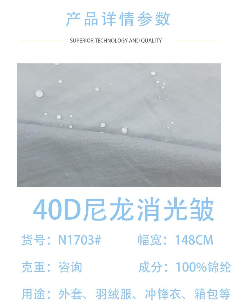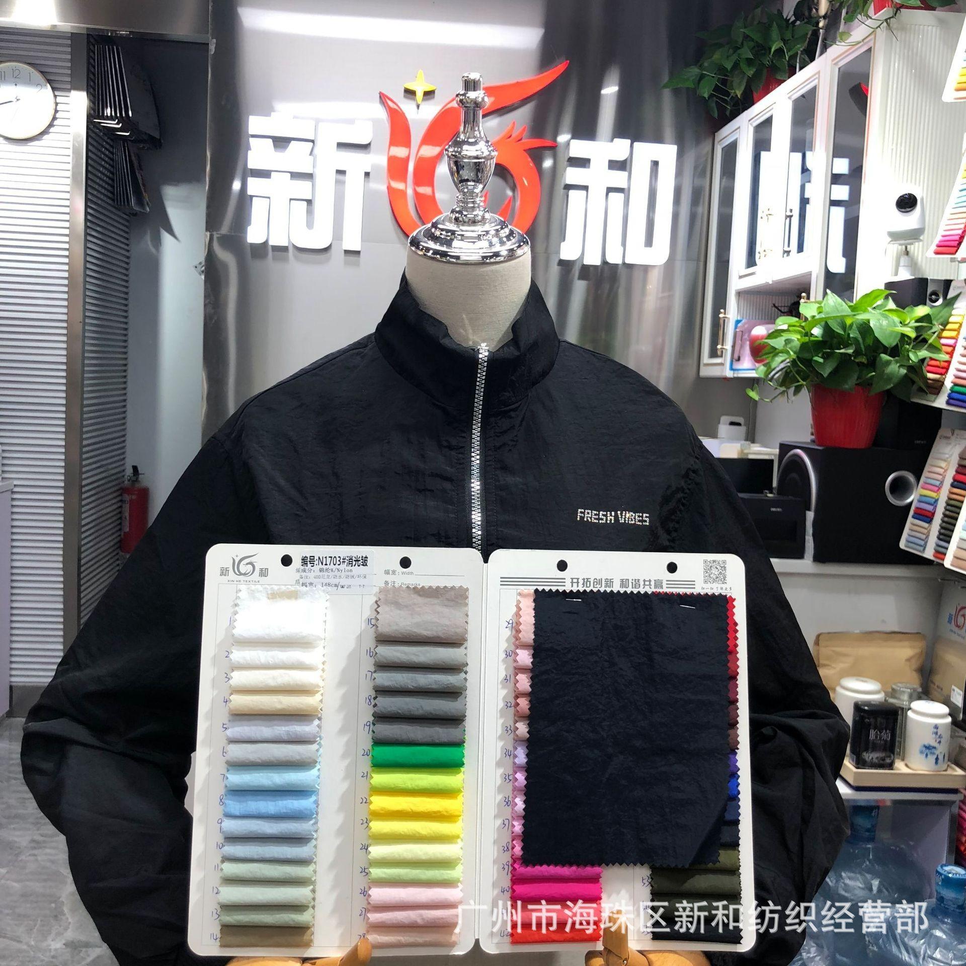 Tejido protector solar 40D nailon mate arrugado tejido para abrigo ligero repelente al agua tejido para chamarra de plumón en stock