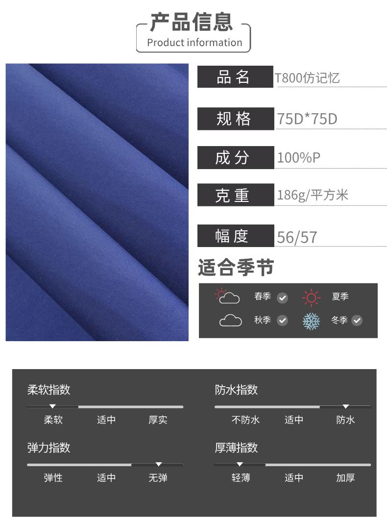 Zonghao Textile T800 Imitación Memoria Ropa Tela Traje de Esquí Tela de Poliéster Impermeable Fibra de Poliéster