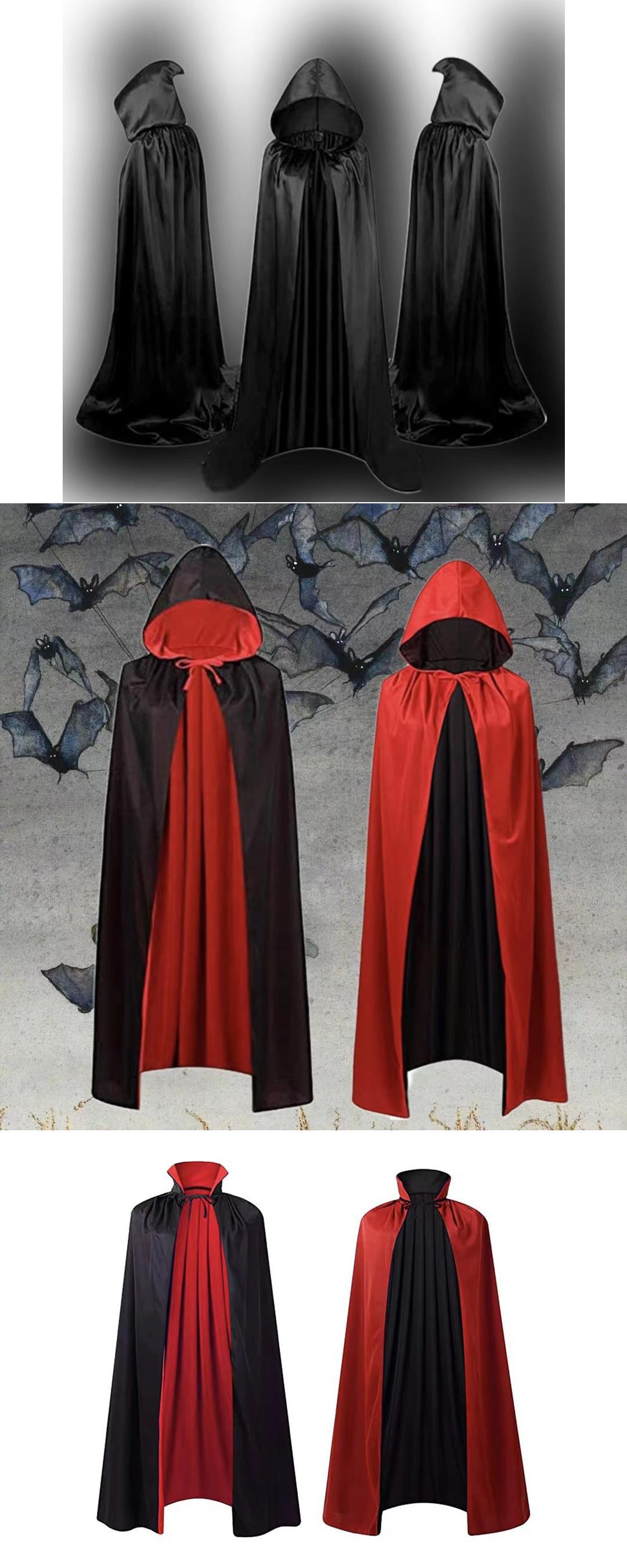 Capa de Halloween Negra Capa de Parca Disfraz de Bruja Diablo Vampiro Fiesta Infantil Cosplay