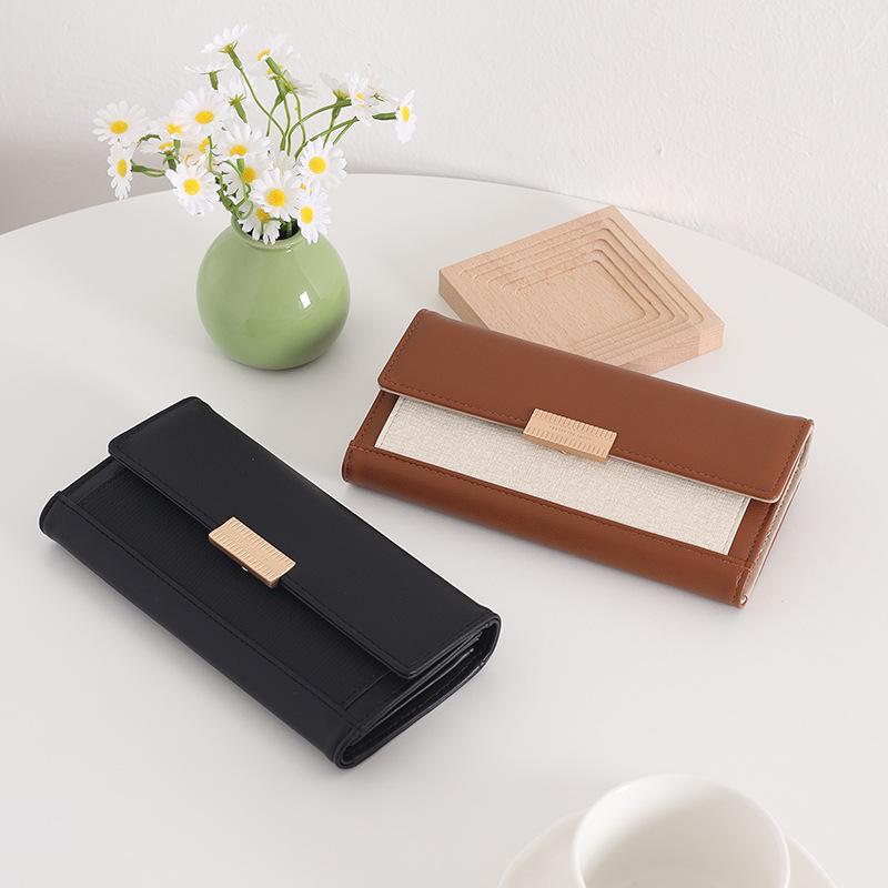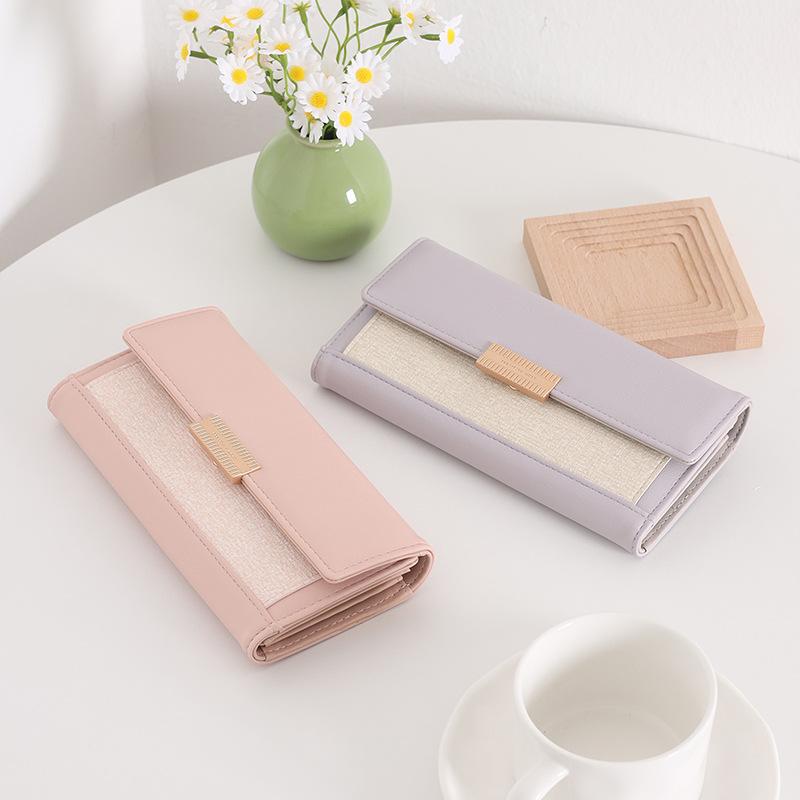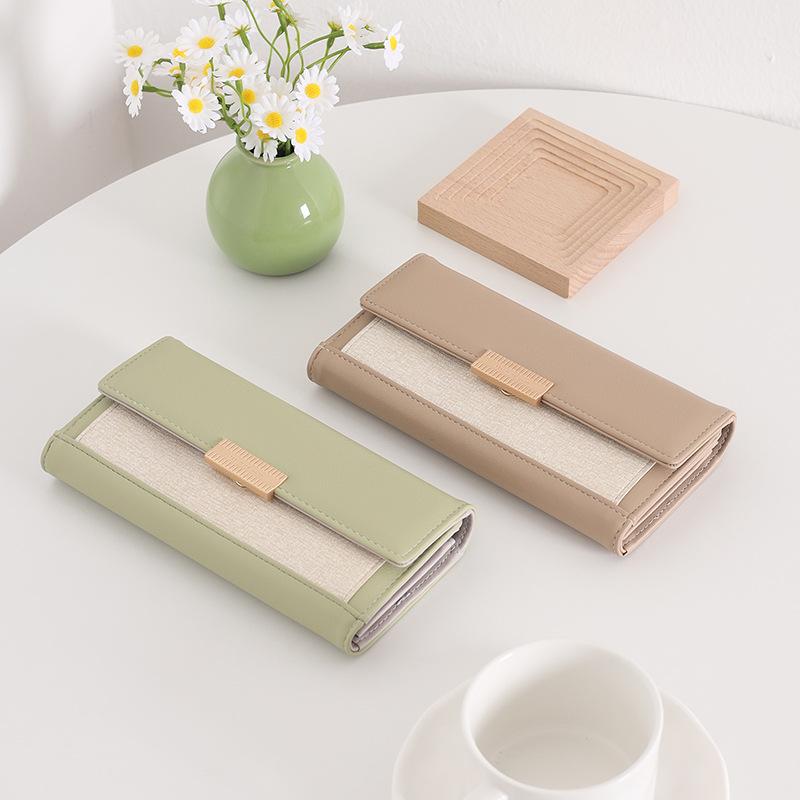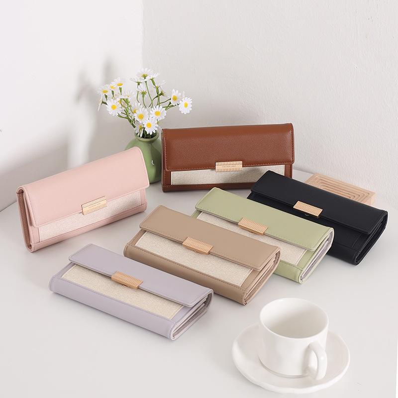 Nueva Billetera de Mujer Larga con Múltiples Tarjeteros Billetera de Color Sólido Simple Triple con Gran Capacidad Bolso Clutch Billetera de Comercio Exterior para Mujer