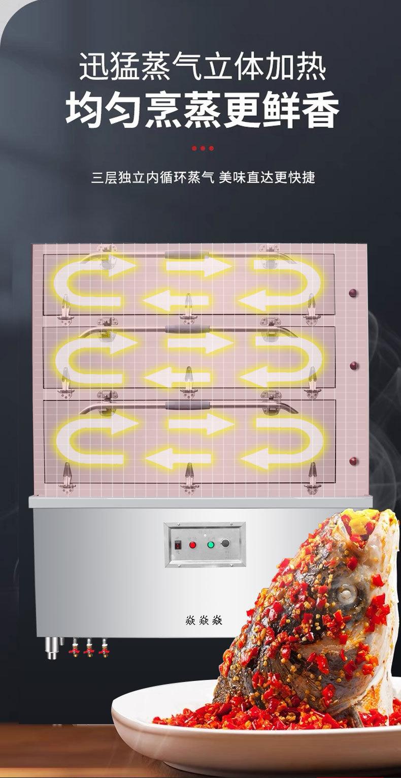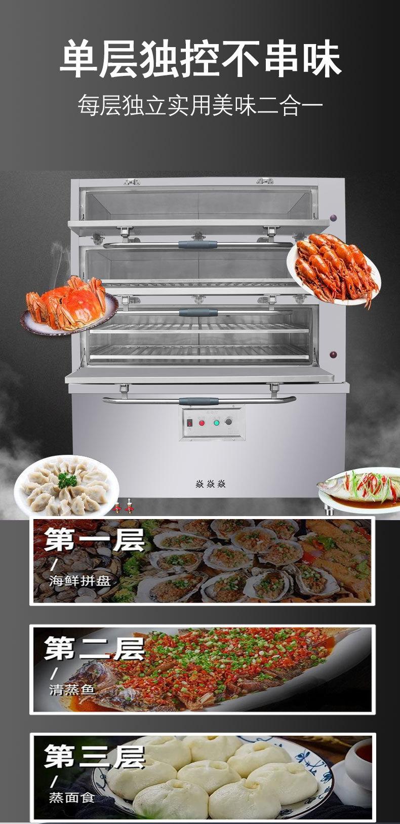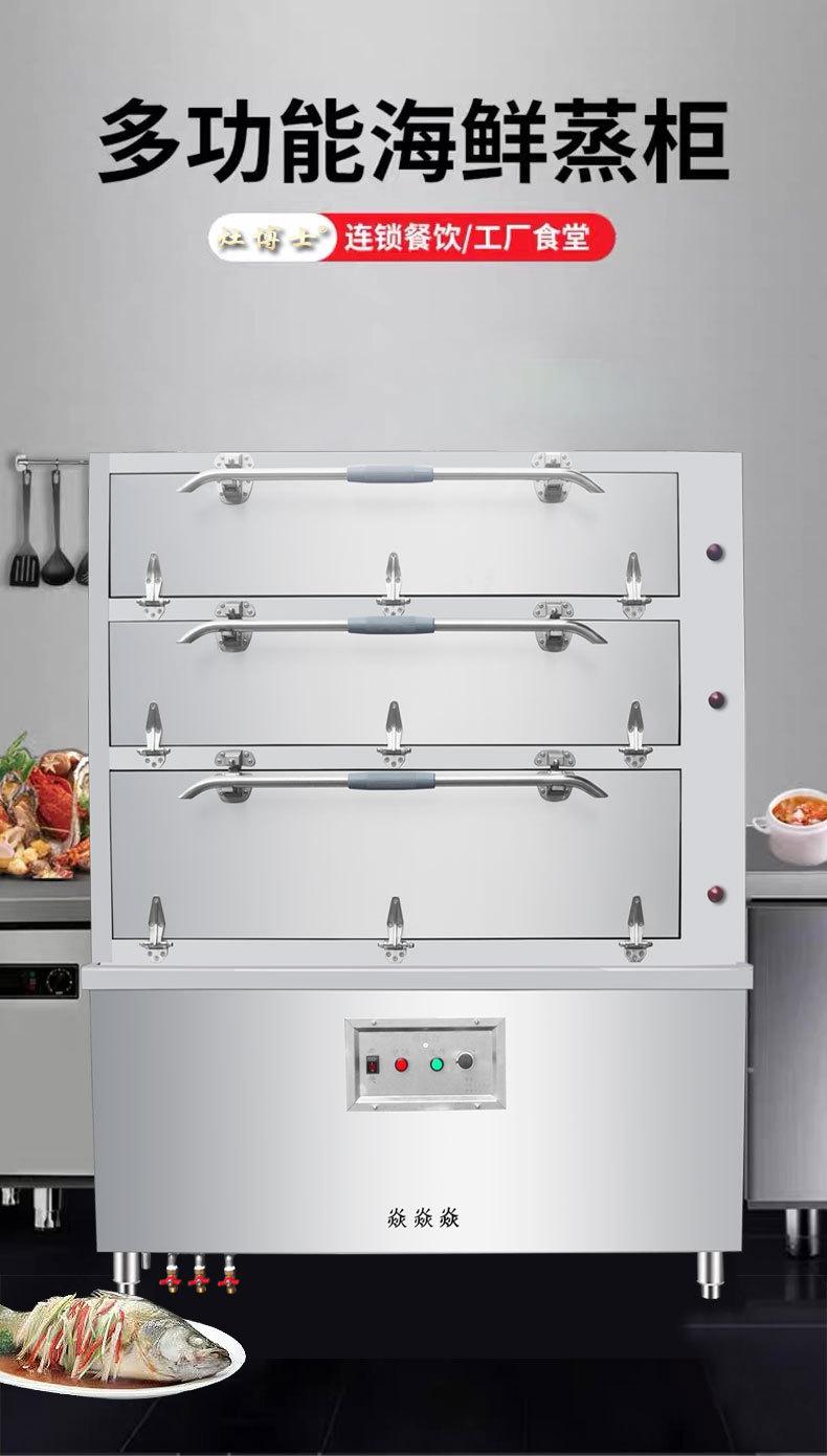 Vaporera de Mariscos a Gas Tres Puertas Alta Temperatura Verduras al Vapor Estofado Vaporera Hotel Restaurante Vaporera Rápida Equipo de Cocina Comercial