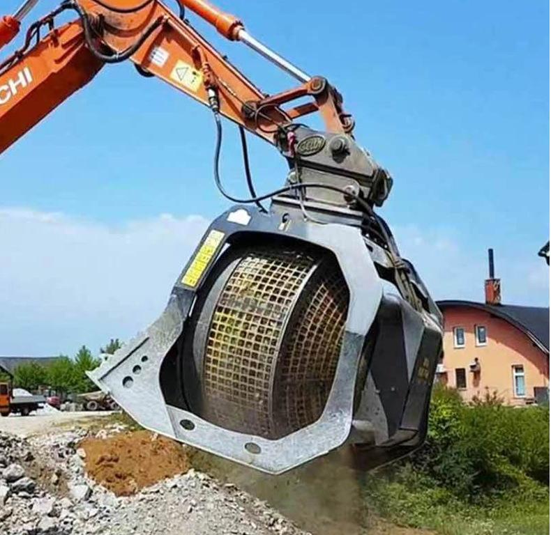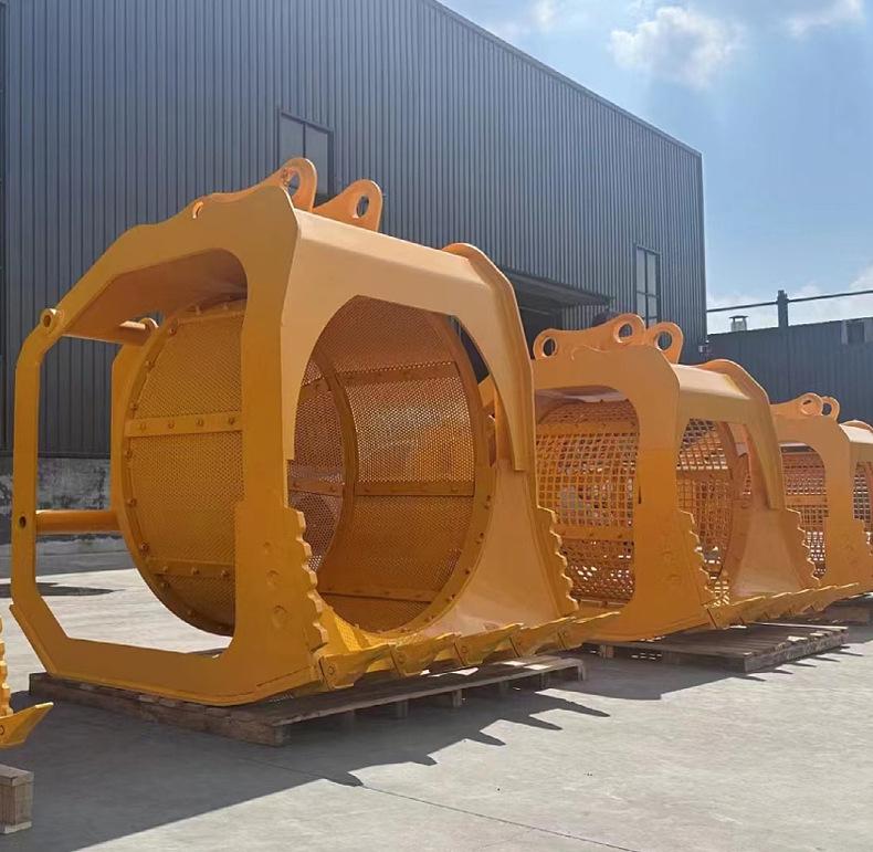 Suministro del fabricante excavadora criba rotatoria hidráulica de trommel excavadora cuchara de cribado minería arena y suelo cuchara de cribado