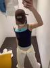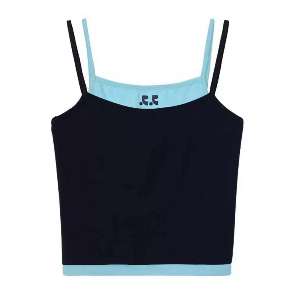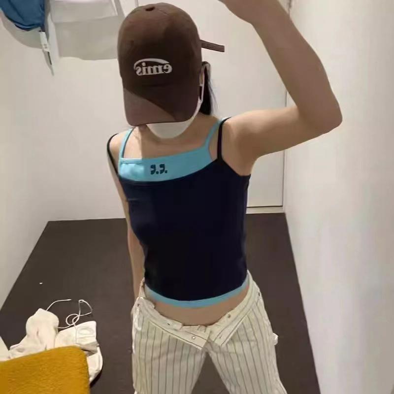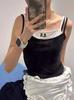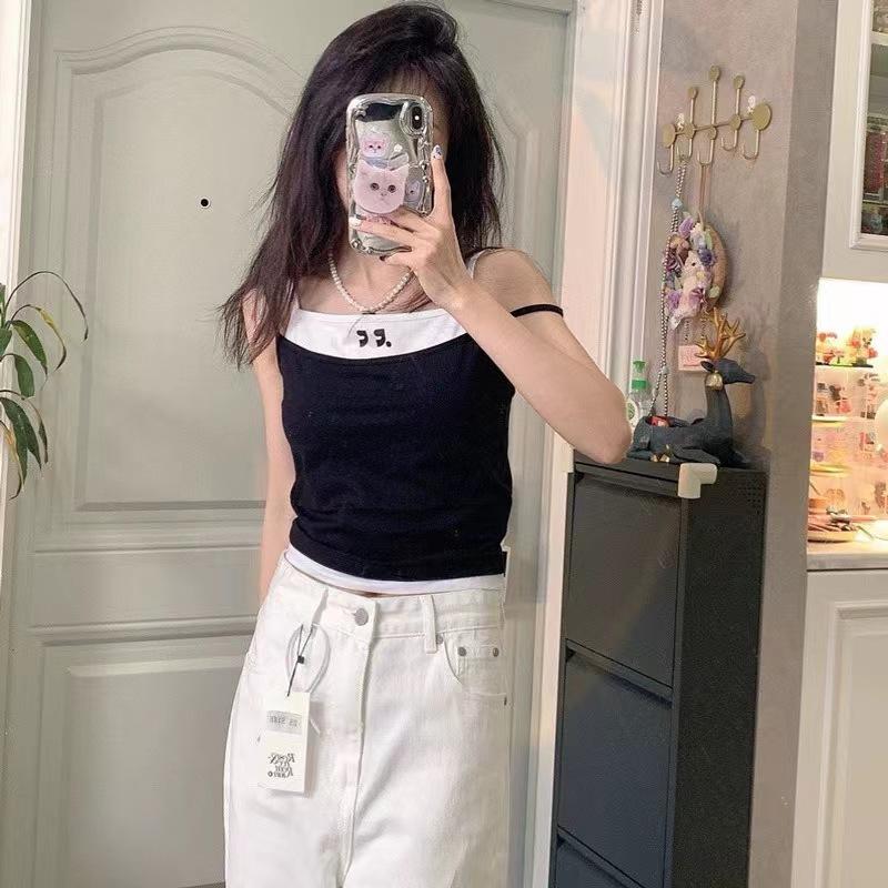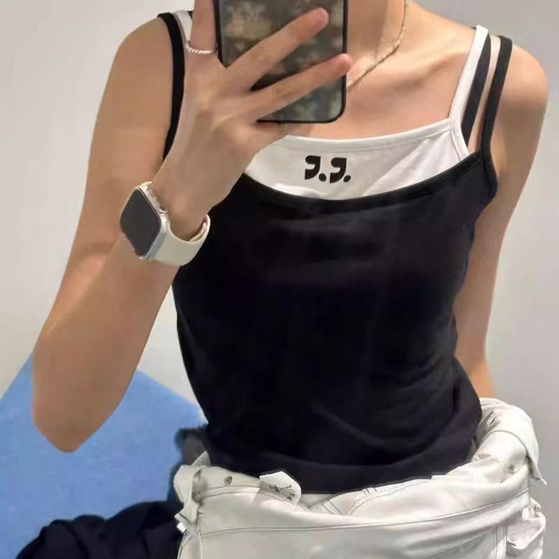 Jimo en stock Camisola sin mangas con estampado de letras RR Estilo coreano Casual Combinable Falso de dos piezas Chaleco camisola sin mangas para mujer