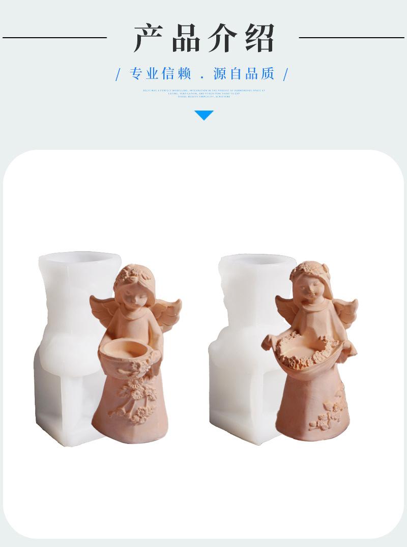 DIY Pegamento Ángel Niña Mano Sosteniendo Portavelas Resina Molde de Silicona Alas Adornos de Angelito Molde de Yeso
