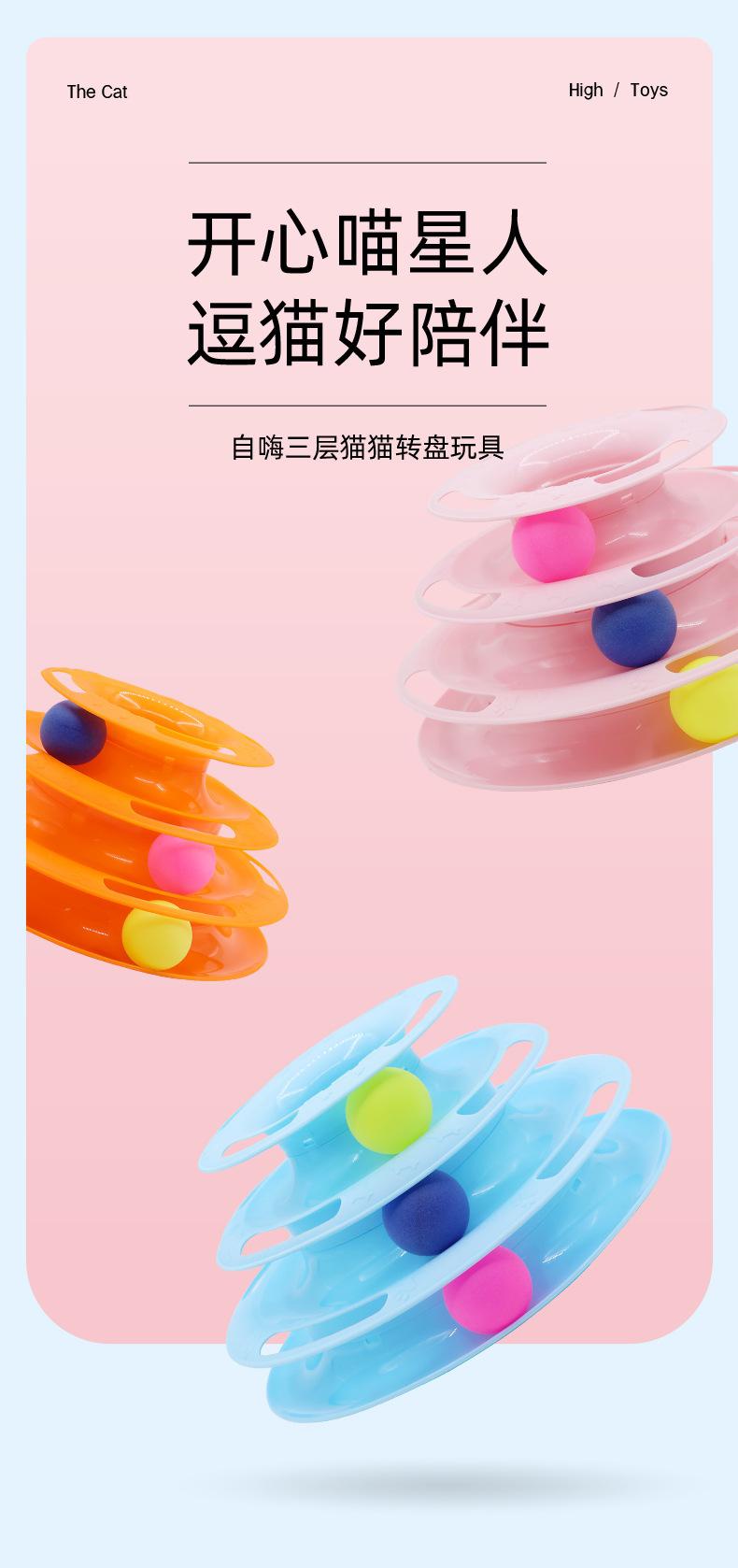 Suministros para mascotas, divertidos juguetes para gatos, pista de bicicleta de tres capas, plataforma giratoria, auto-saludo para aliviar el aburrimiento, divertido palo para gatos, juguetes no eléctricos para gatos