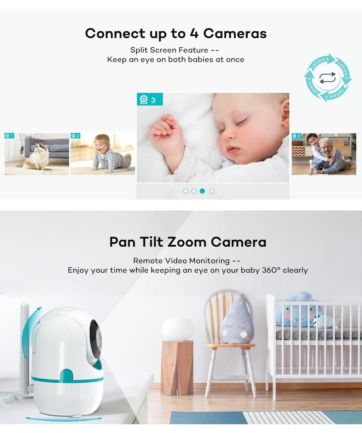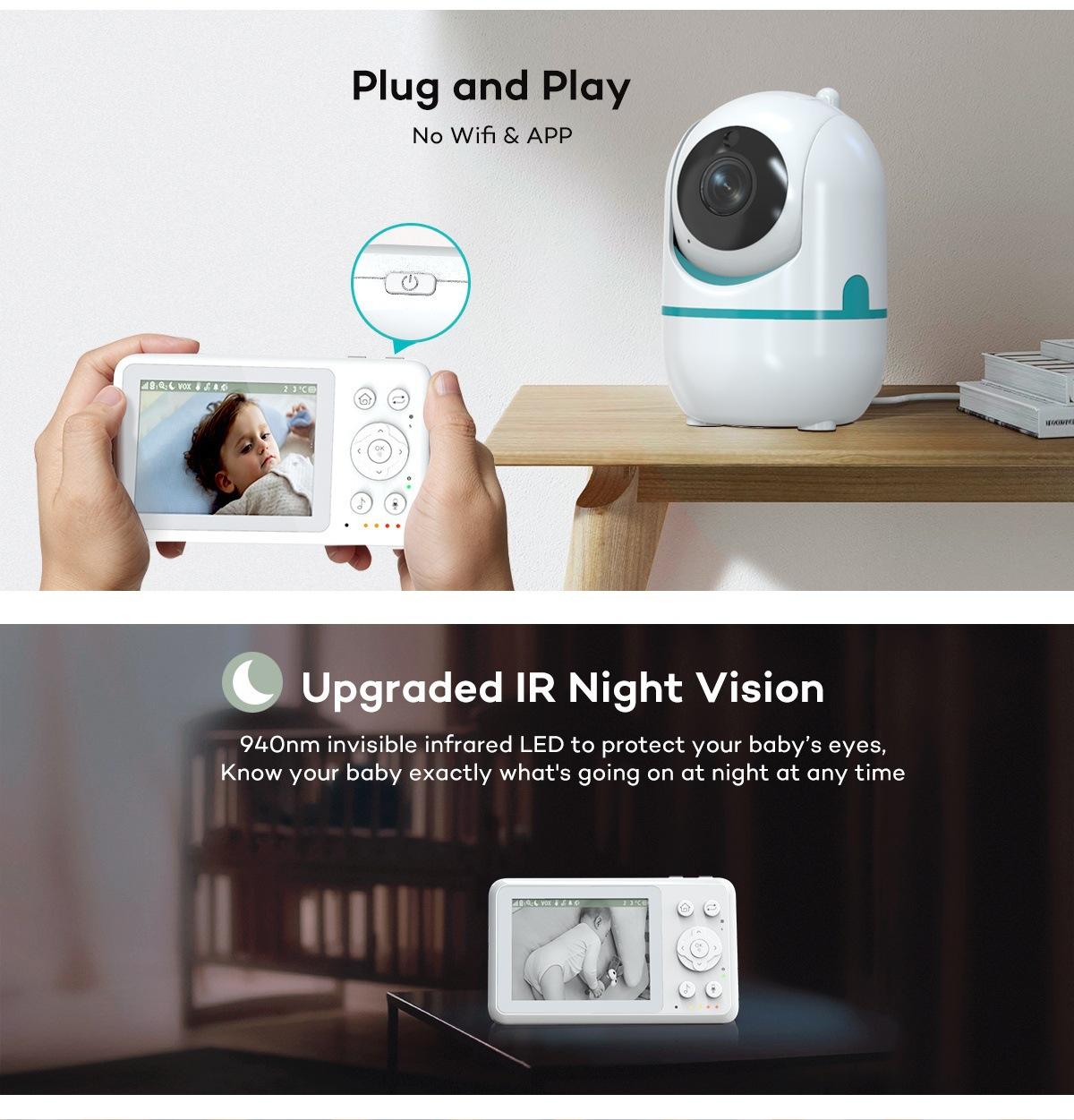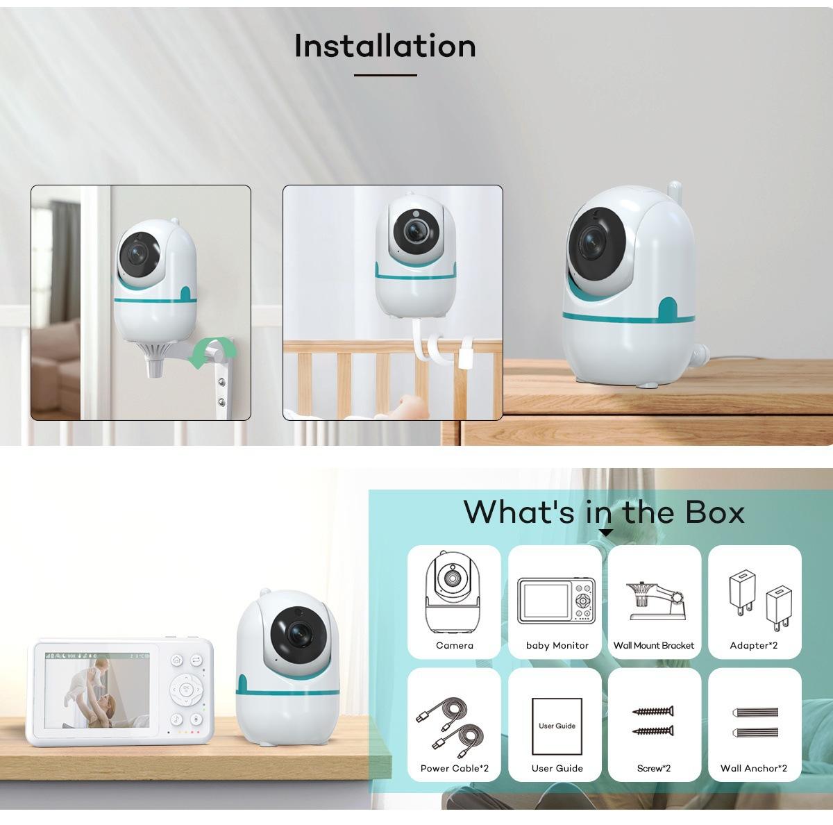 Monitor para Bebé Transfronterizo Monitor para Bebé de 3.2 pulgadas Inalámbrico con Pan-Tilt Monitor con Calidad de Imagen HD