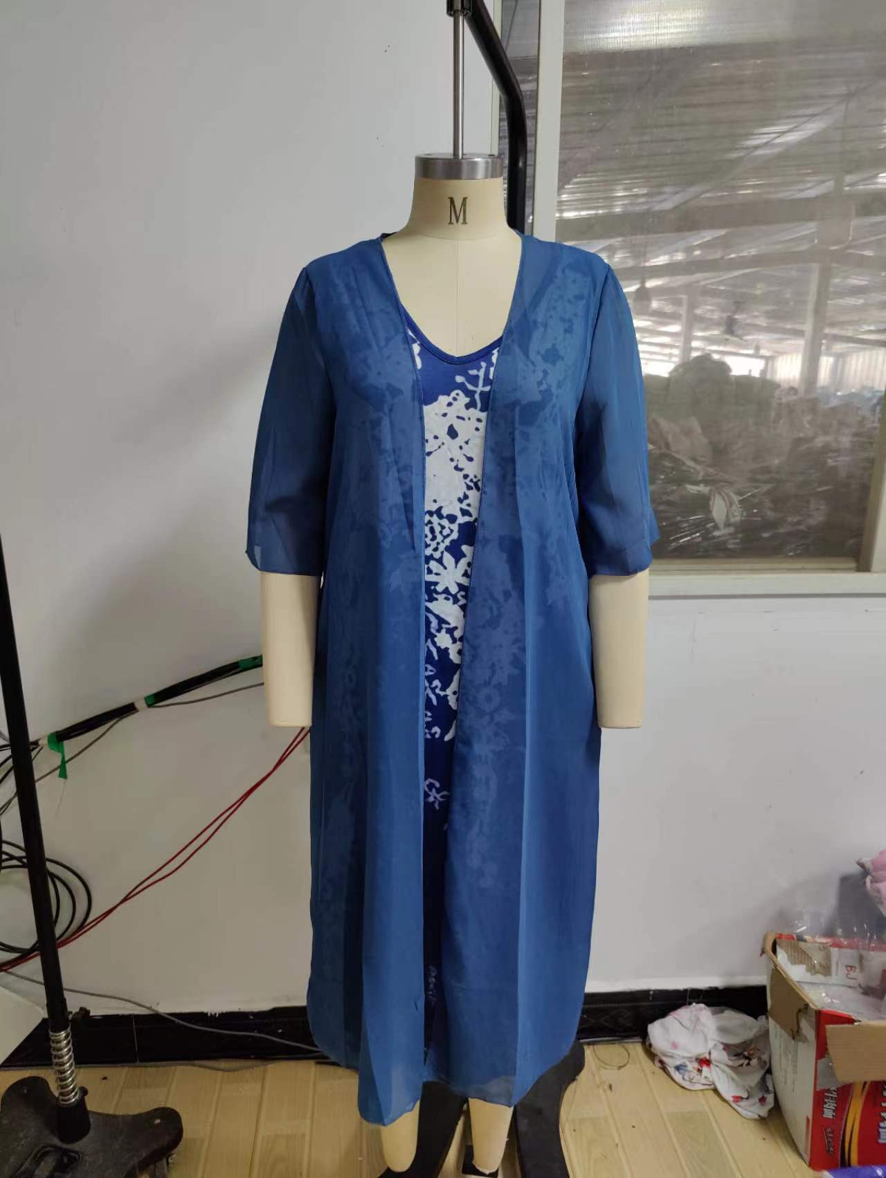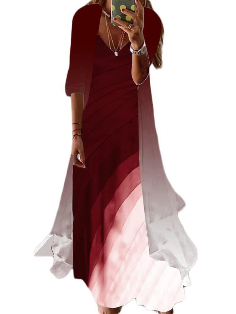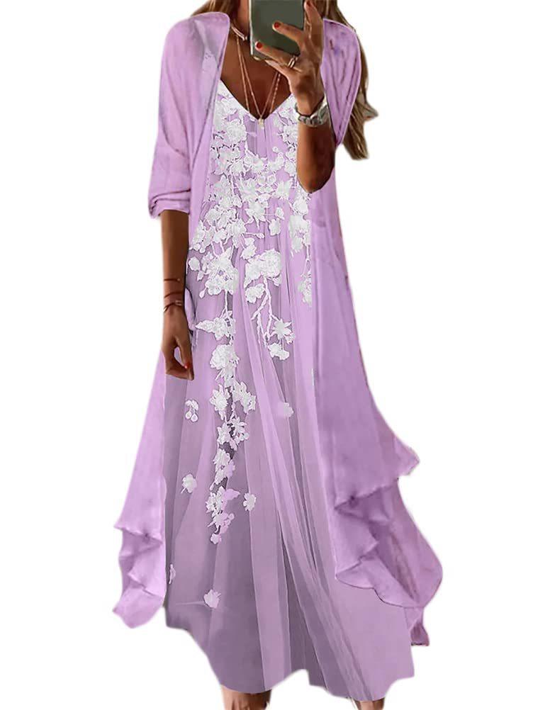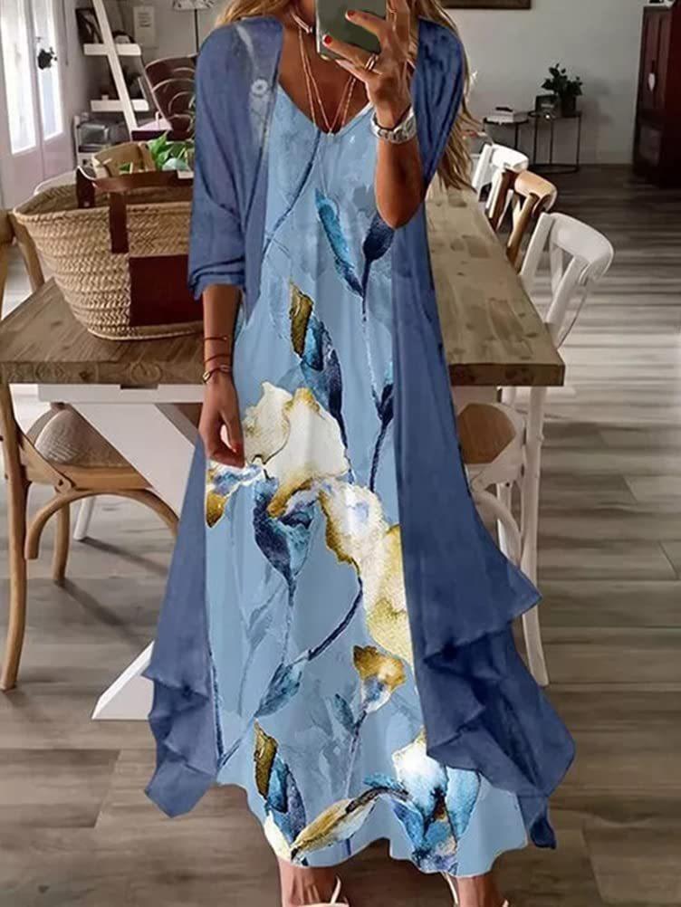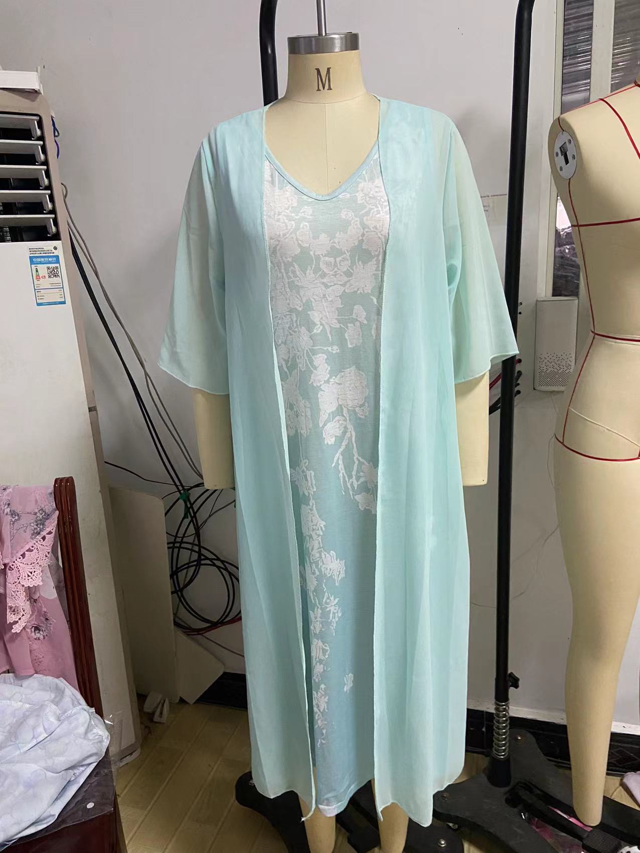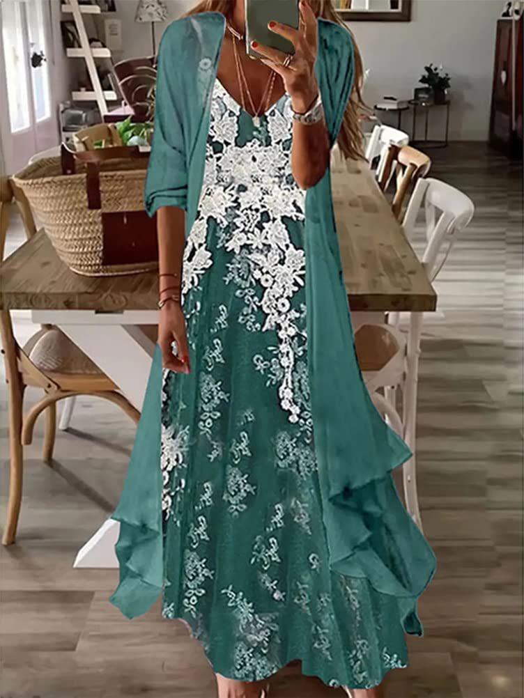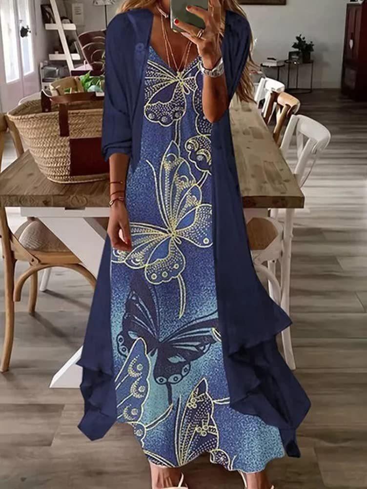 Transfronterizo 2022 Nuevo Verano Europeo y Americano para Mujer Estampado Vacacional Tirantes Falda Larga Camisa Exterior Vestido de dos piezas Mujer