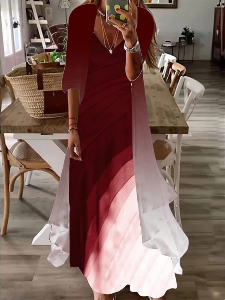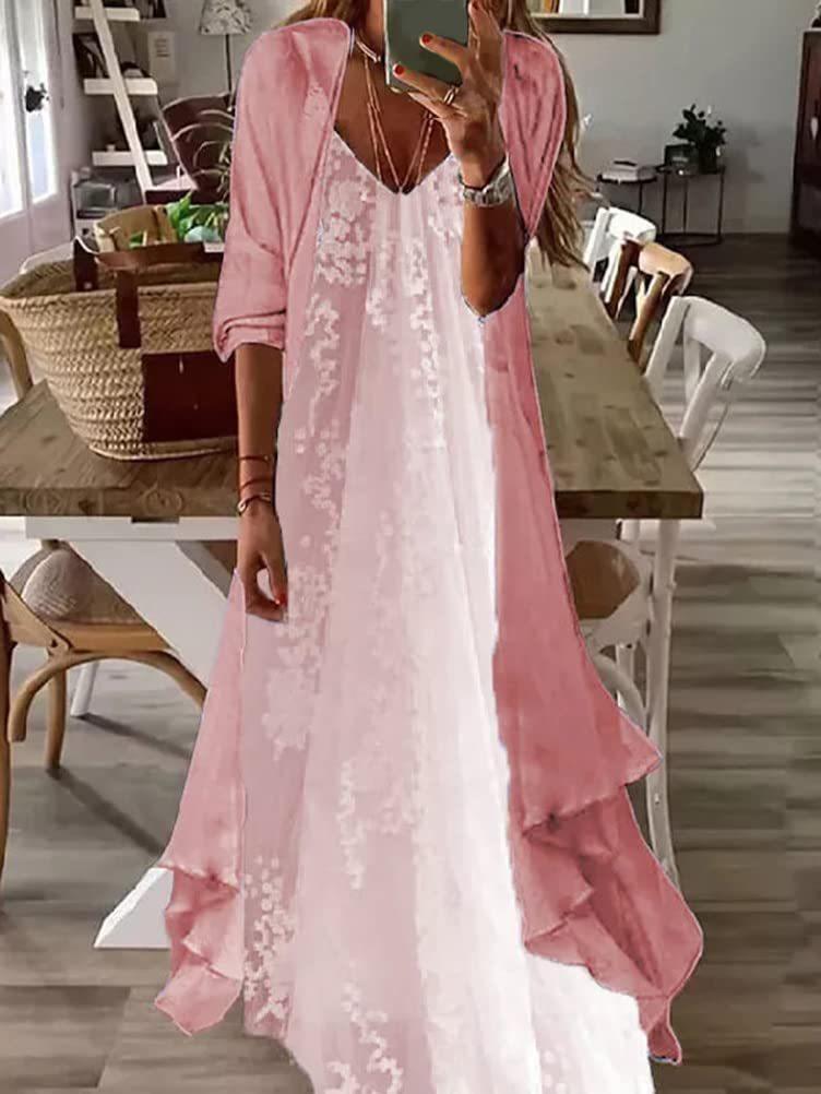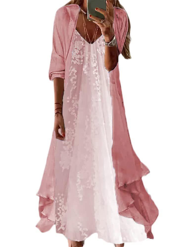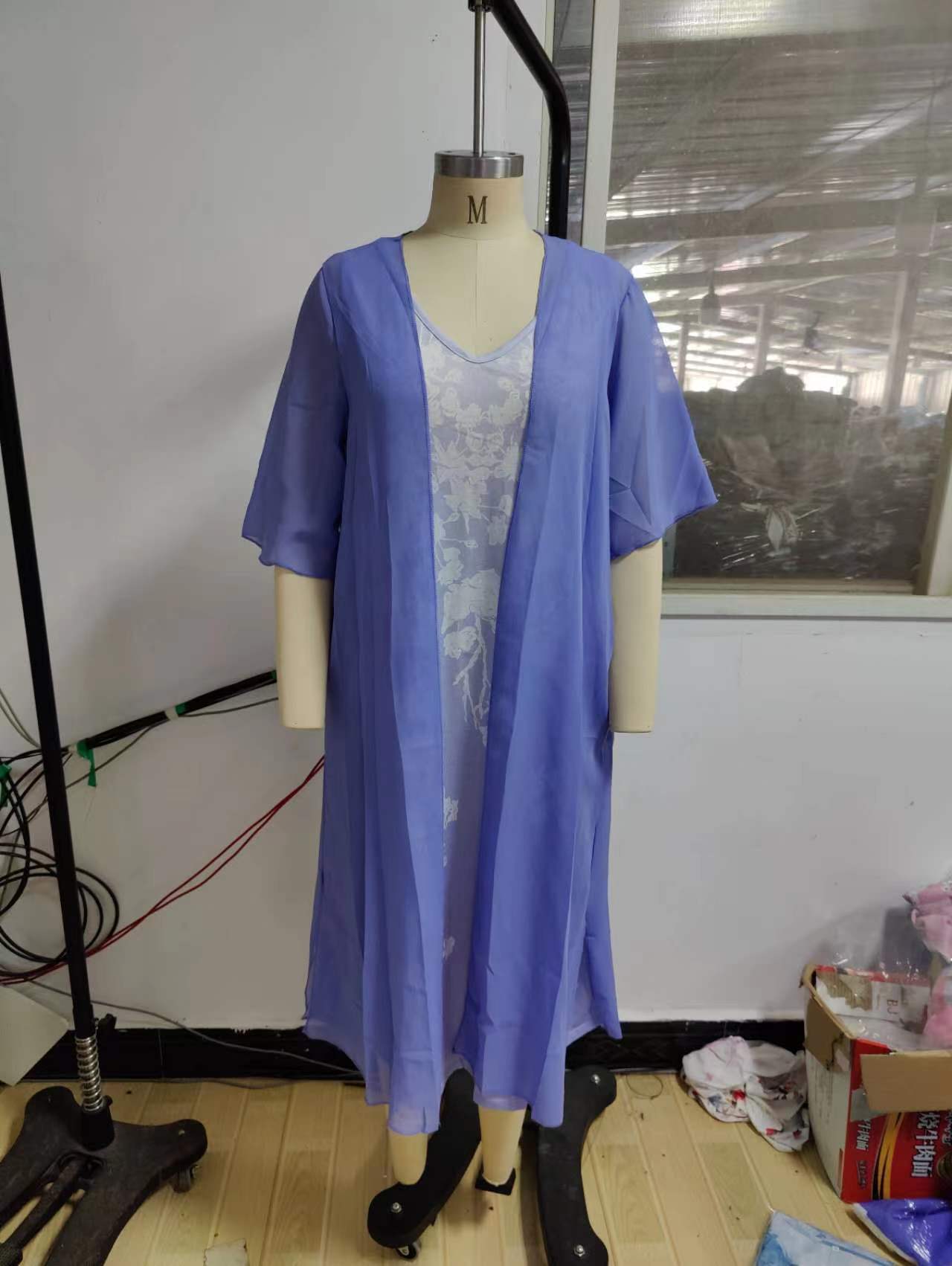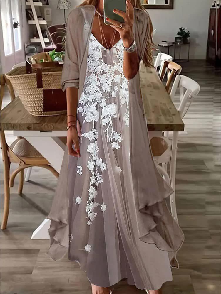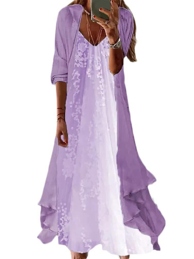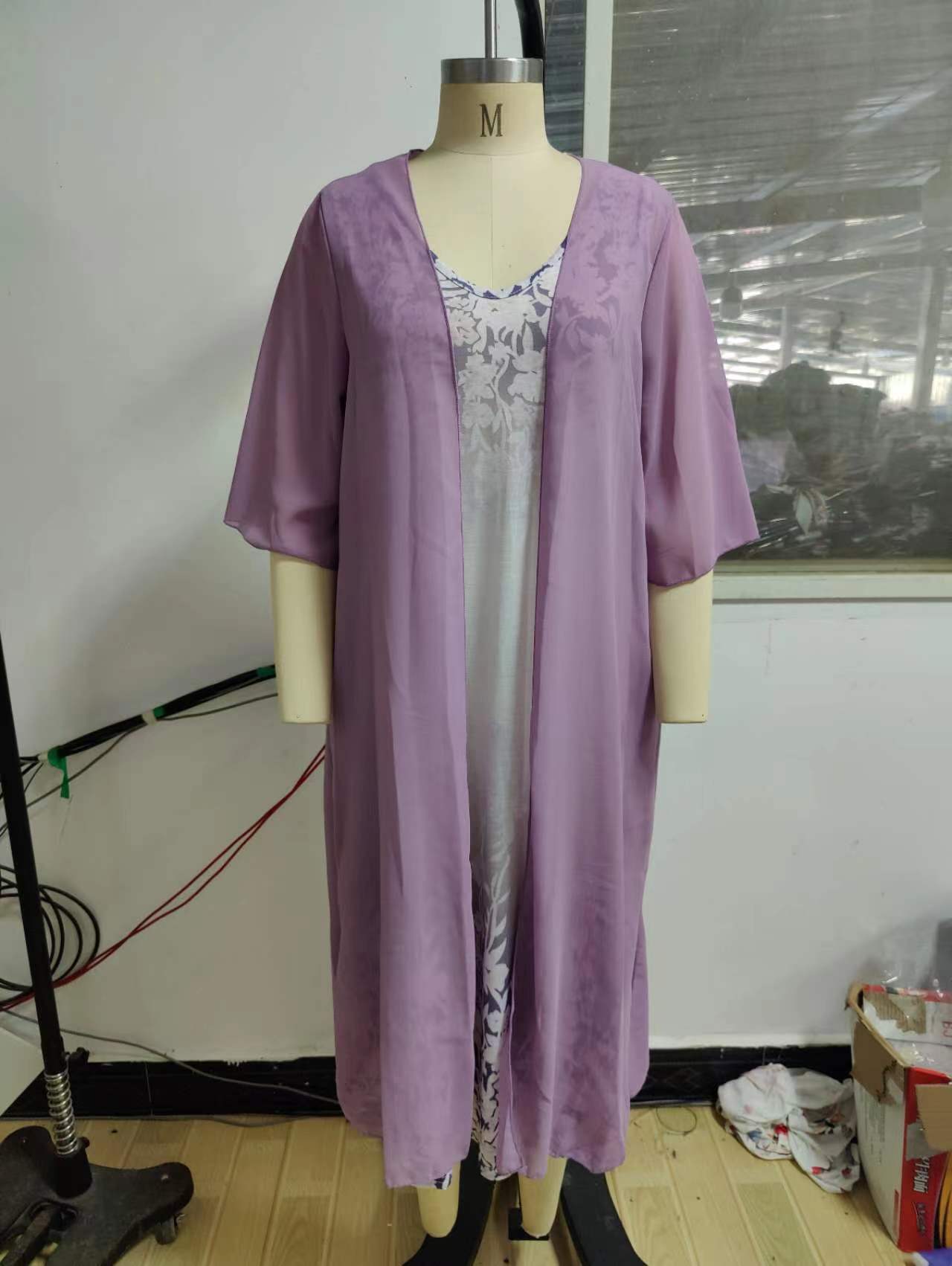 Transfronterizo 2022 Nuevo Verano Europeo y Americano para Mujer Estampado Vacacional Tirantes Falda Larga Camisa Exterior Vestido de dos piezas Mujer