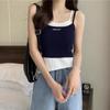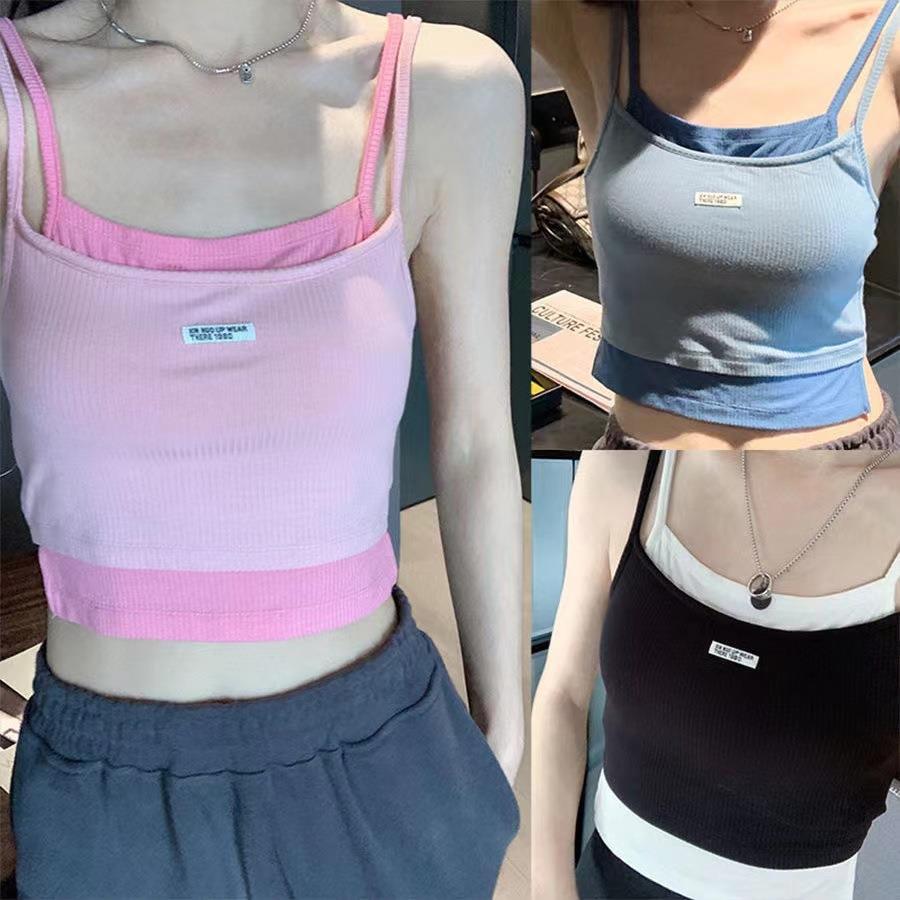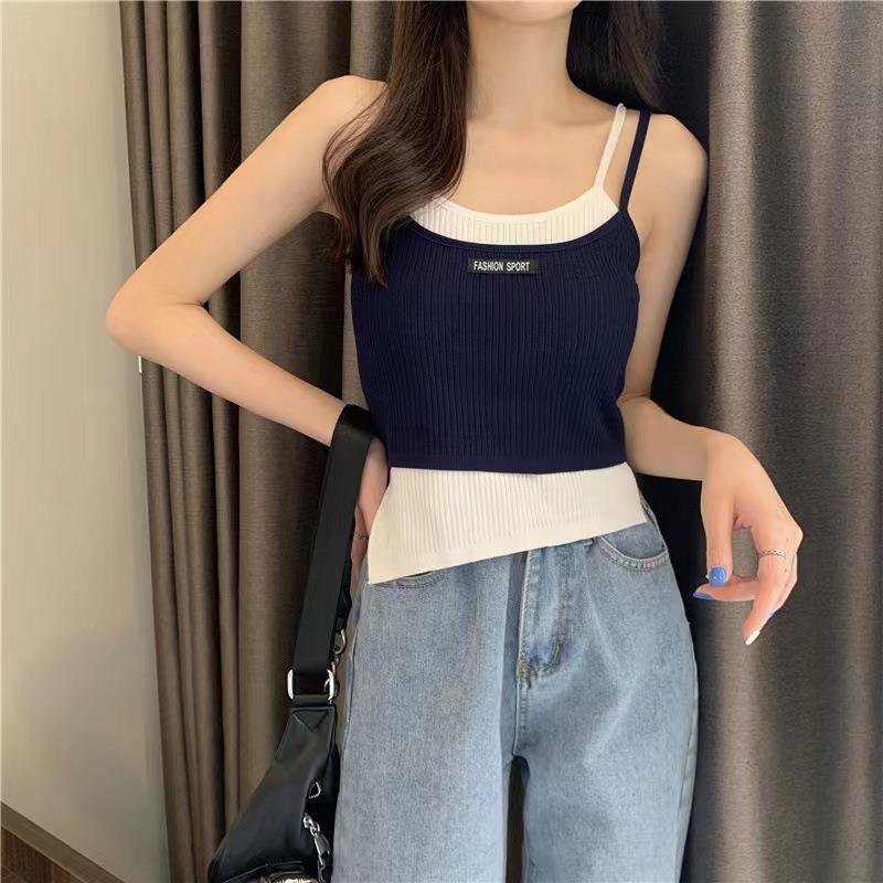 Camisola Falsa de Dos Piezas para Mujer Diseño con Almohadilla para el Pecho Ropa Exterior Estilo Francés Interior Deportivo Retro sin Mangas Tejido de Punto