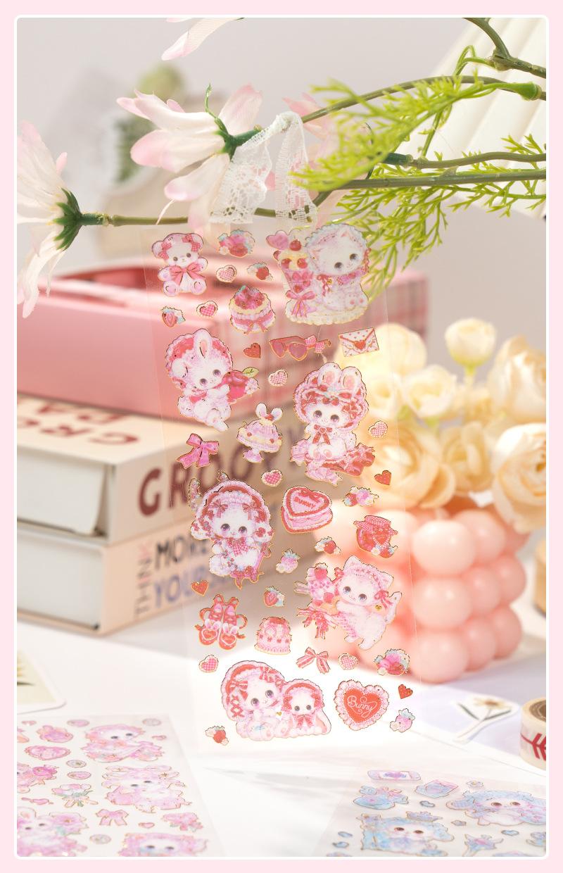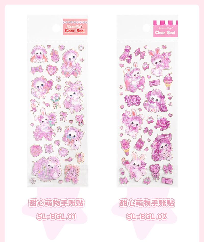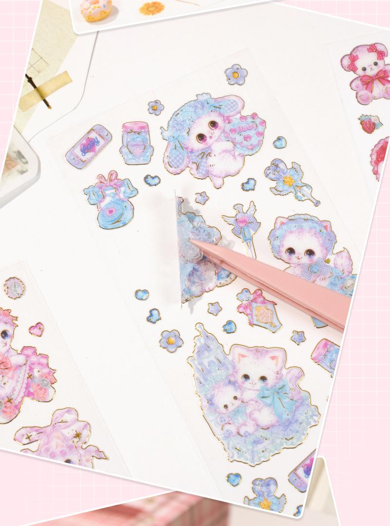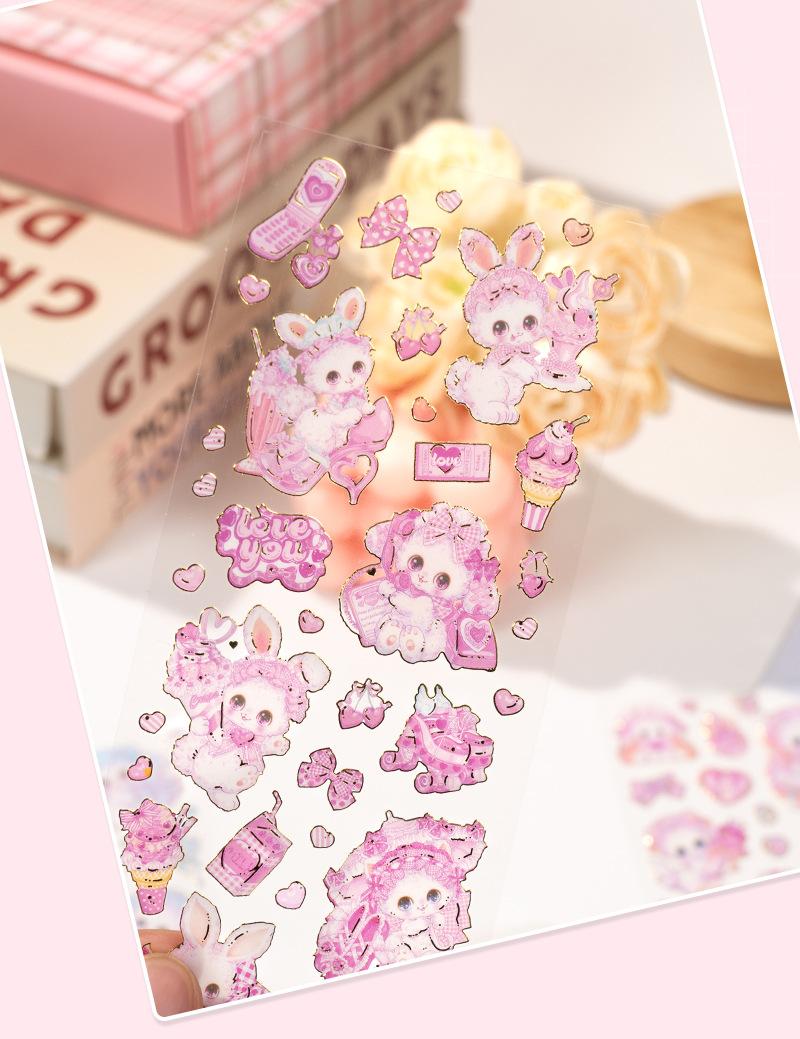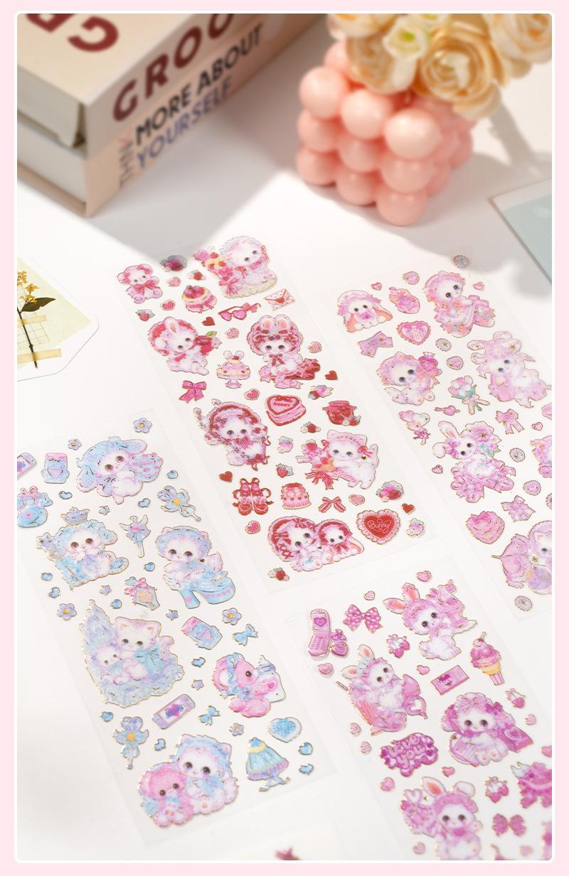 Brillantes Adhesivos de Diario de Corazón Dulce Lindo Lámina Dorada Conejo Gato Naricita Decorativos para Niños Adhesivos de Diario Goo Card para Niñas
