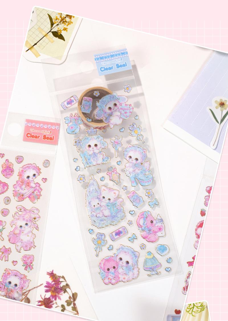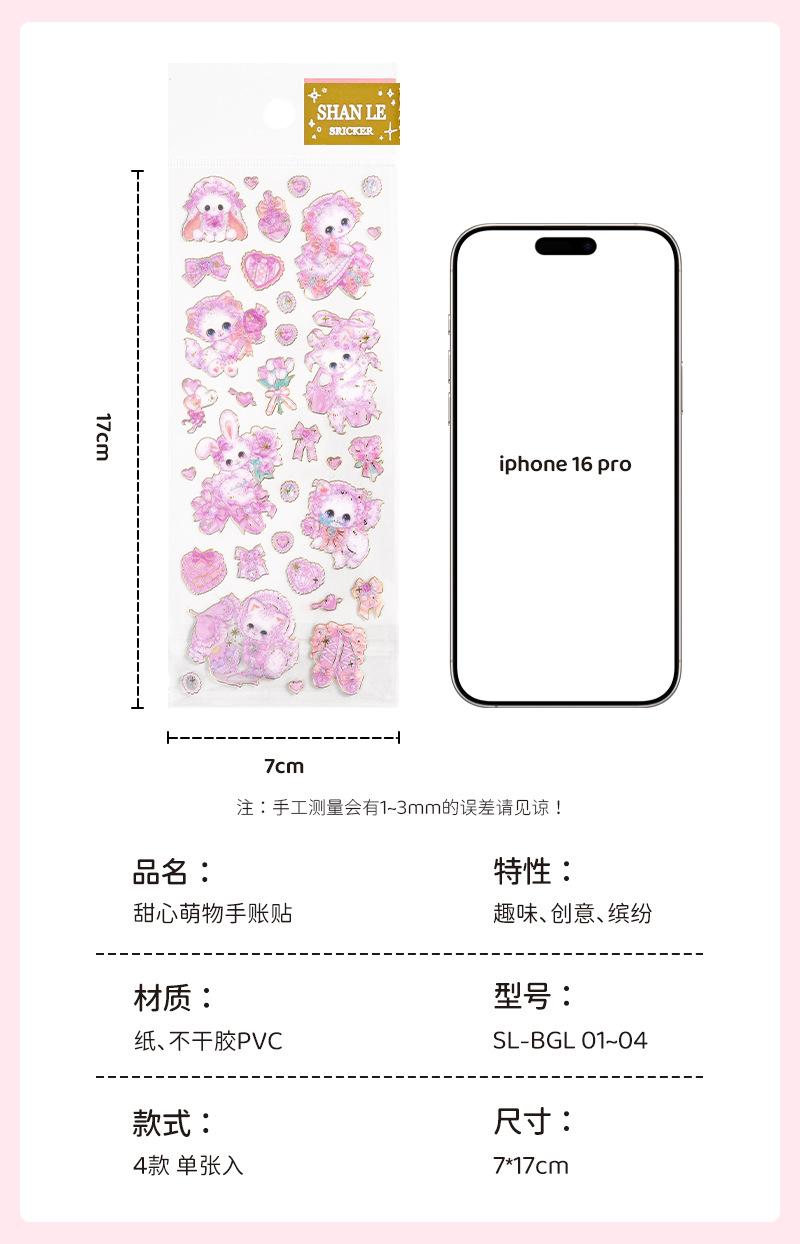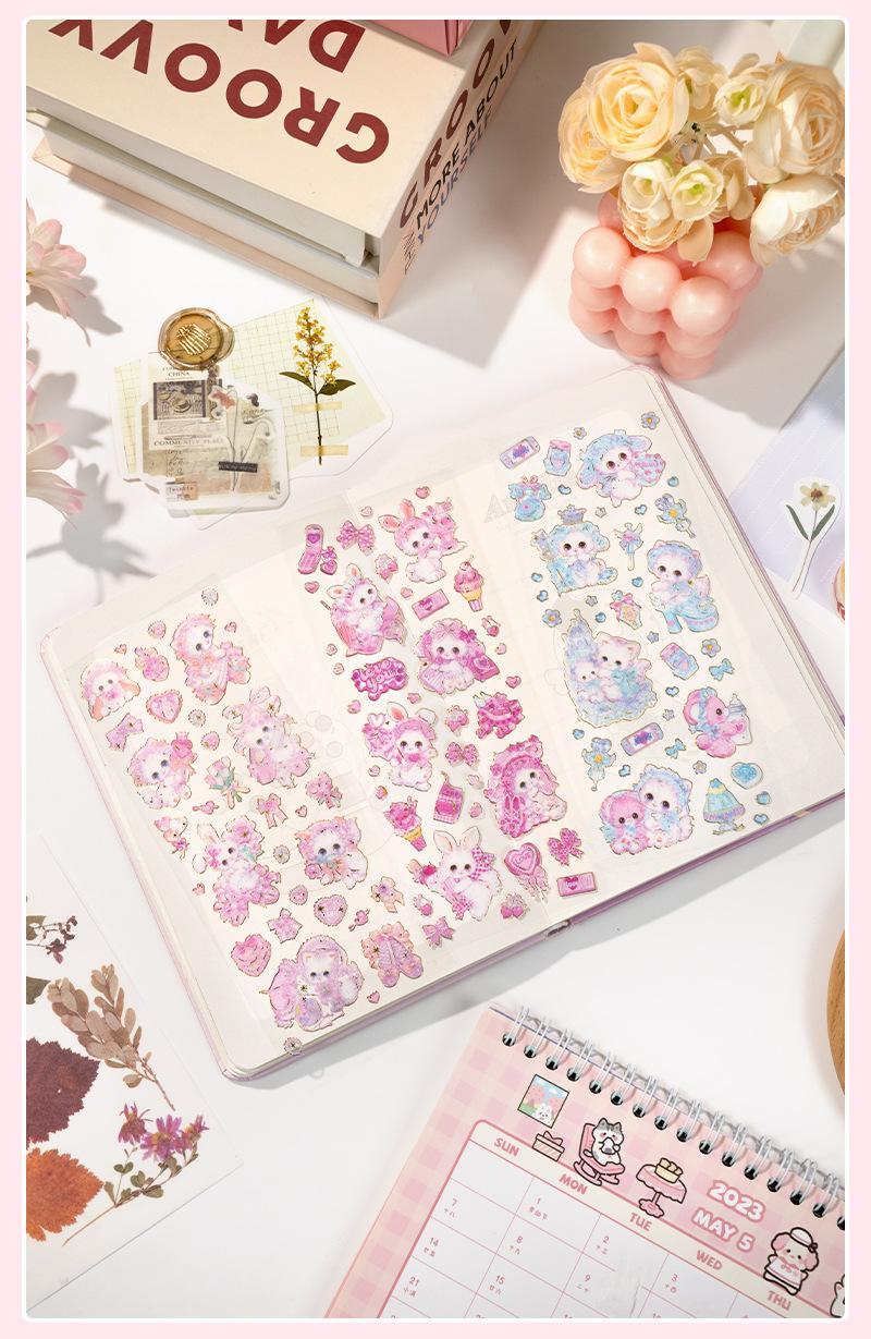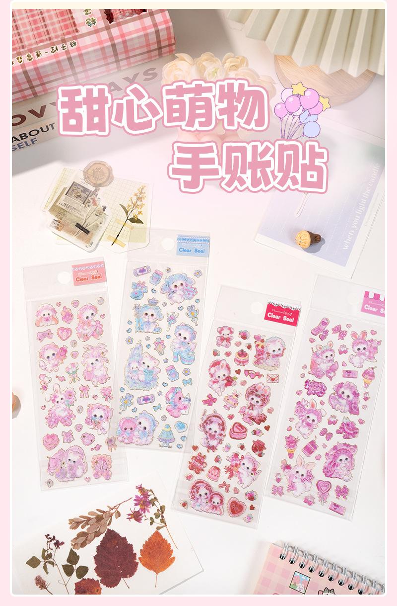 Brillantes Adhesivos de Diario de Corazón Dulce Lindo Lámina Dorada Conejo Gato Naricita Decorativos para Niños Adhesivos de Diario Goo Card para Niñas