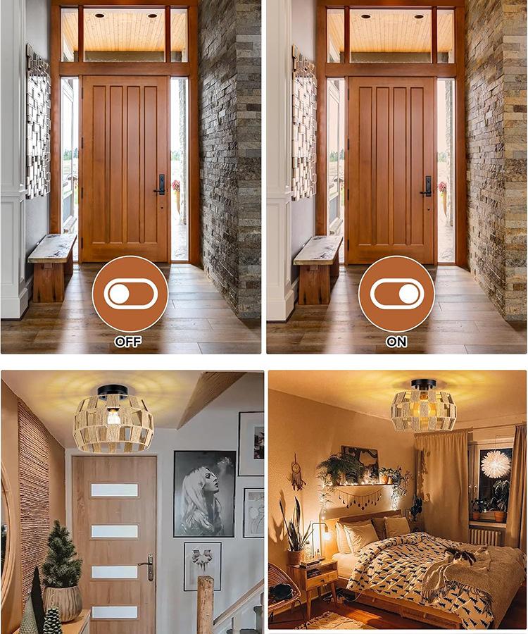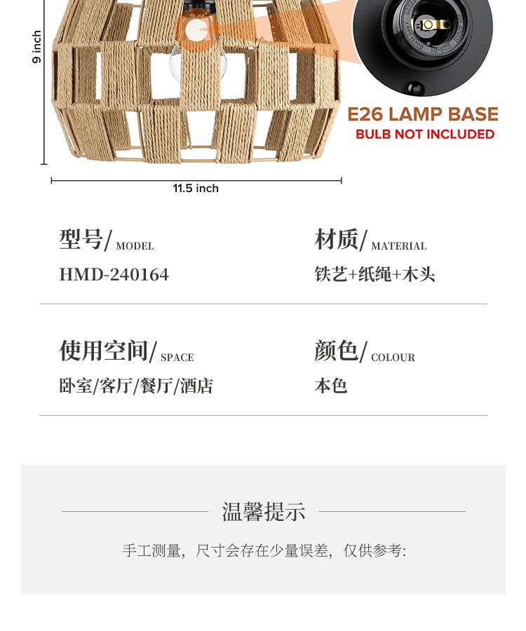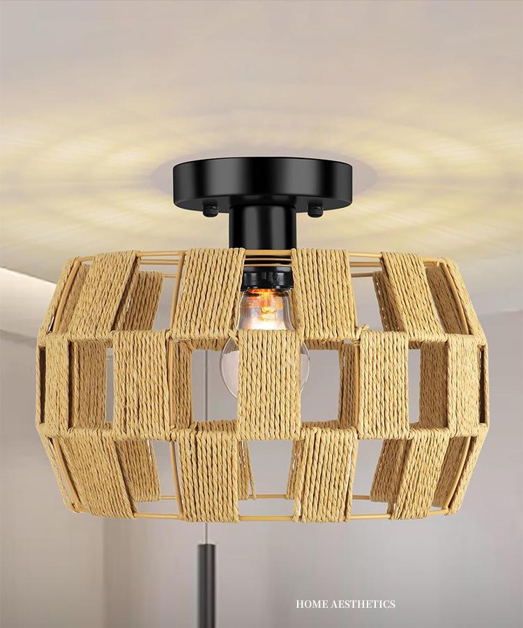 Pantalla de Lámpara de Cuerda de Papel Estilo Pastoral Sala de Estar Restaurante B&B Salón de Té Zen Restaurante Hot Pot Lámpara de Techo Decorativa Creativa Japonesa