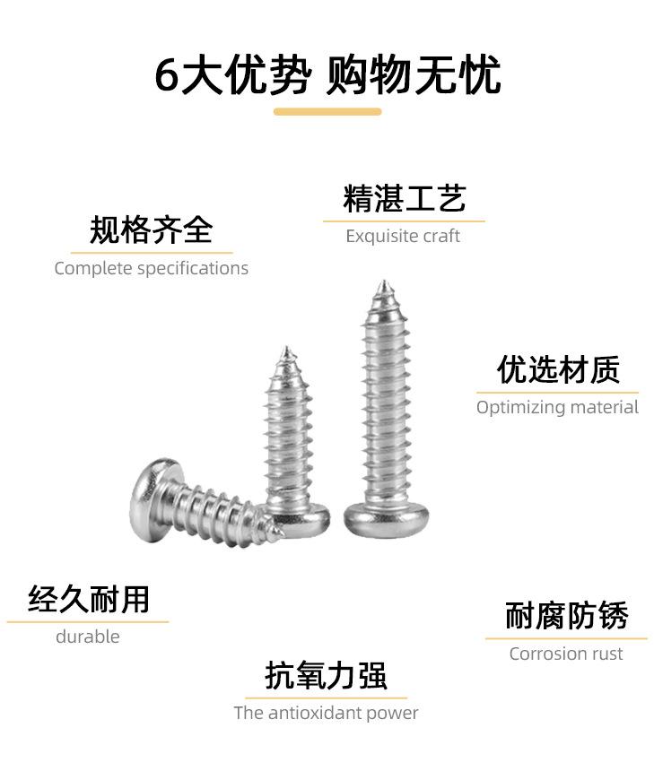 Tornillos Autorroscantes de Acero Inoxidable 304 PA Cabeza Redonda Phillips Tornillos Pequeños Tornillos Autorroscantes de Cabeza Pan M2M3M4M5M6M7