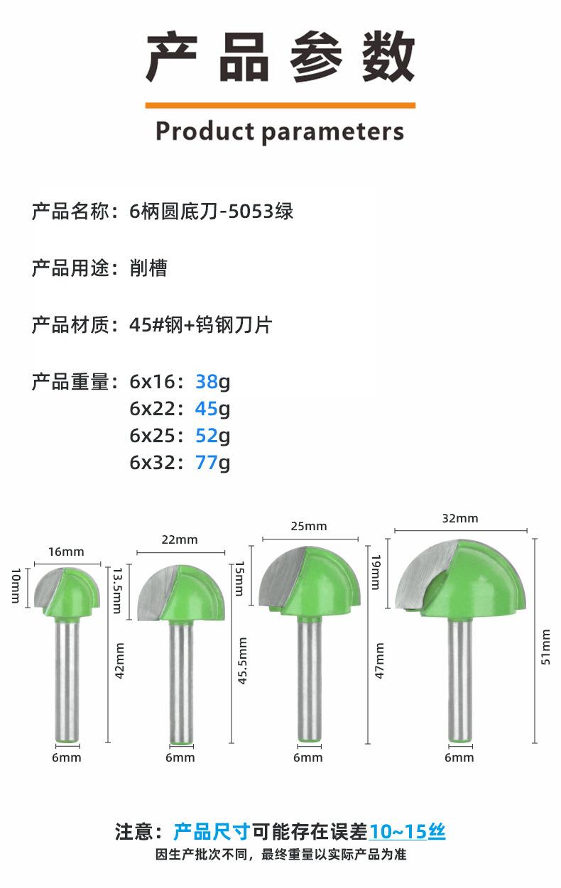 Fresa de fondo redondo Yusheng 5053 verde 6 mangos fresa de carpintería fresa ranurada de fondo semicircular fresa de bola de encaje cabezal de corte para máquina de grabado