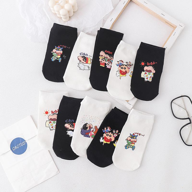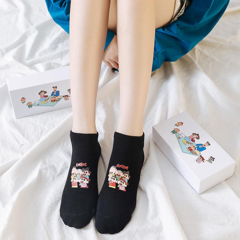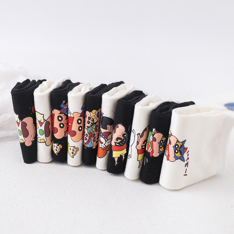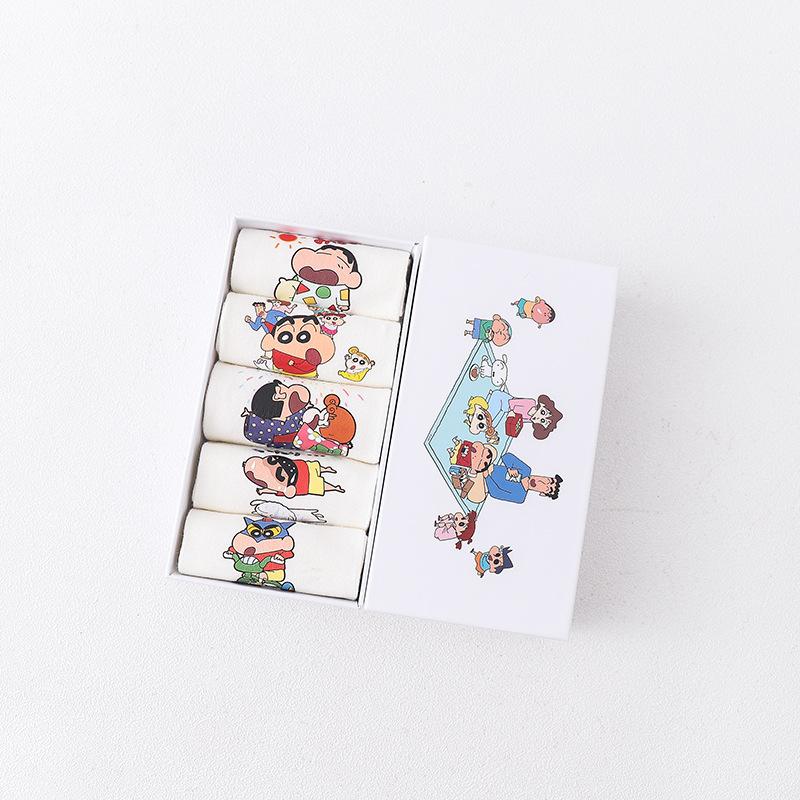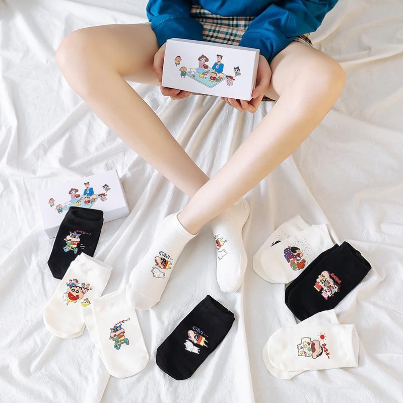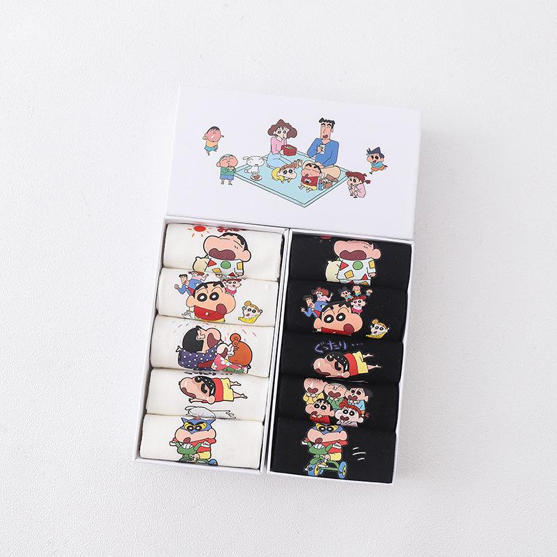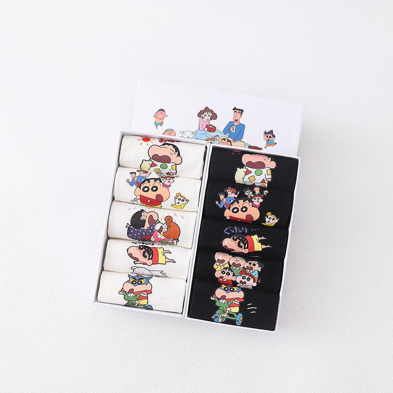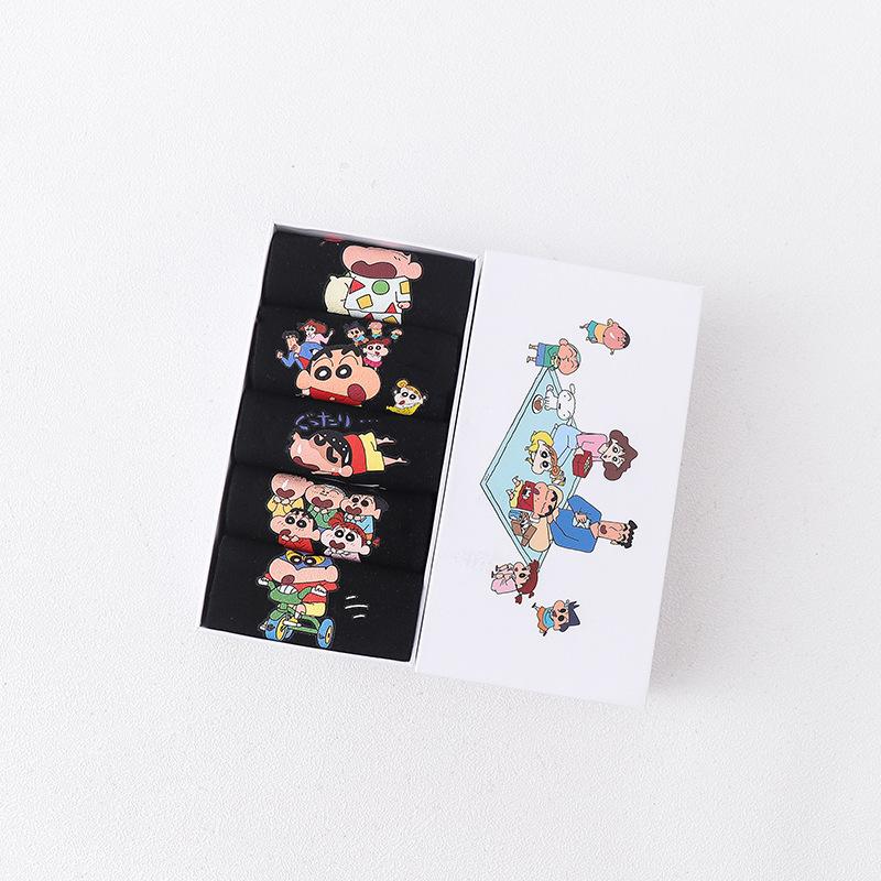 Calcetines de moda nuevos de primavera y verano 2023 calcetines personalizados de crayón pequeños nuevos de dibujos animados en caja 5 pares de calcetines de caja de regalo clásicos blanco y negro