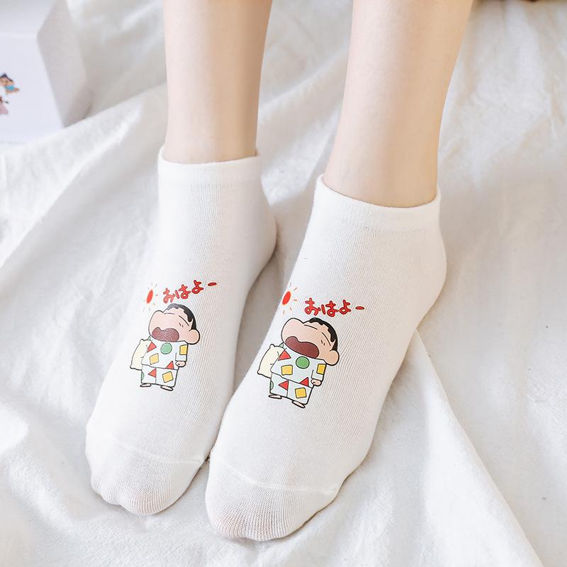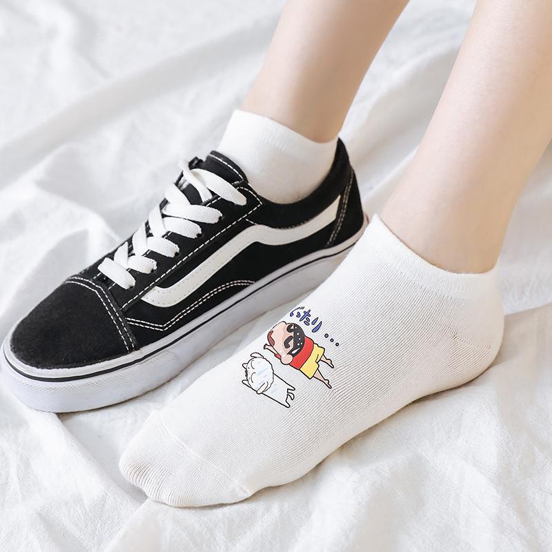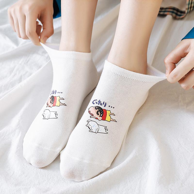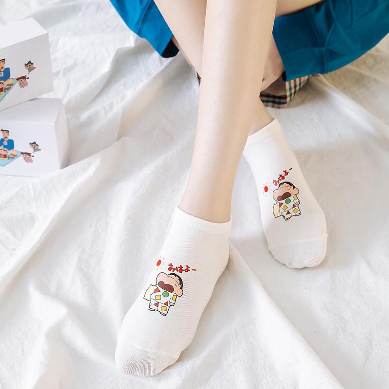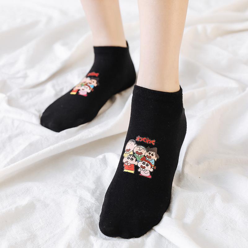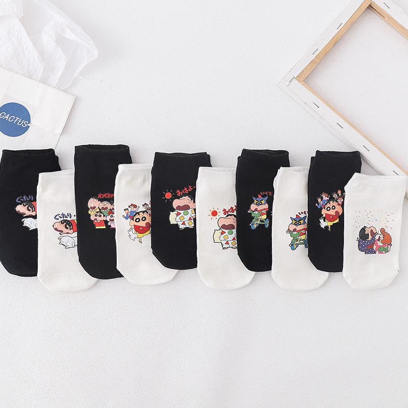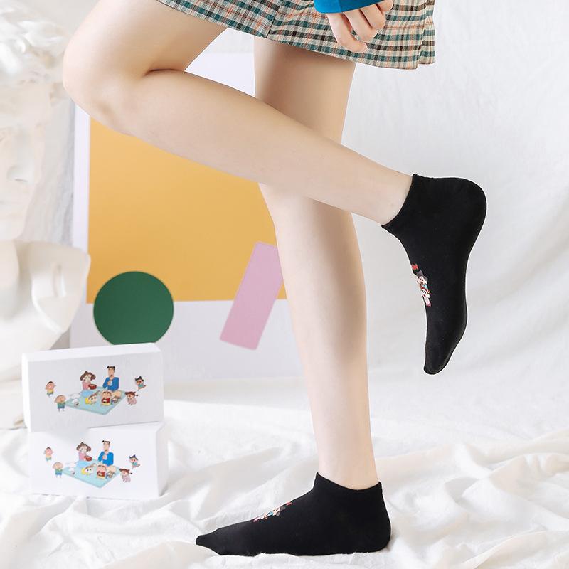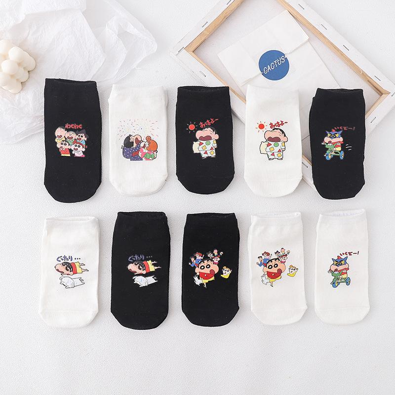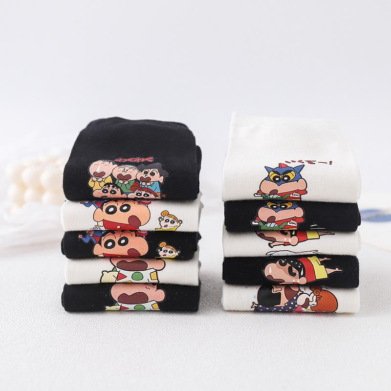 Calcetines de moda nuevos de primavera y verano 2023 calcetines personalizados de crayón pequeños nuevos de dibujos animados en caja 5 pares de calcetines de caja de regalo clásicos blanco y negro