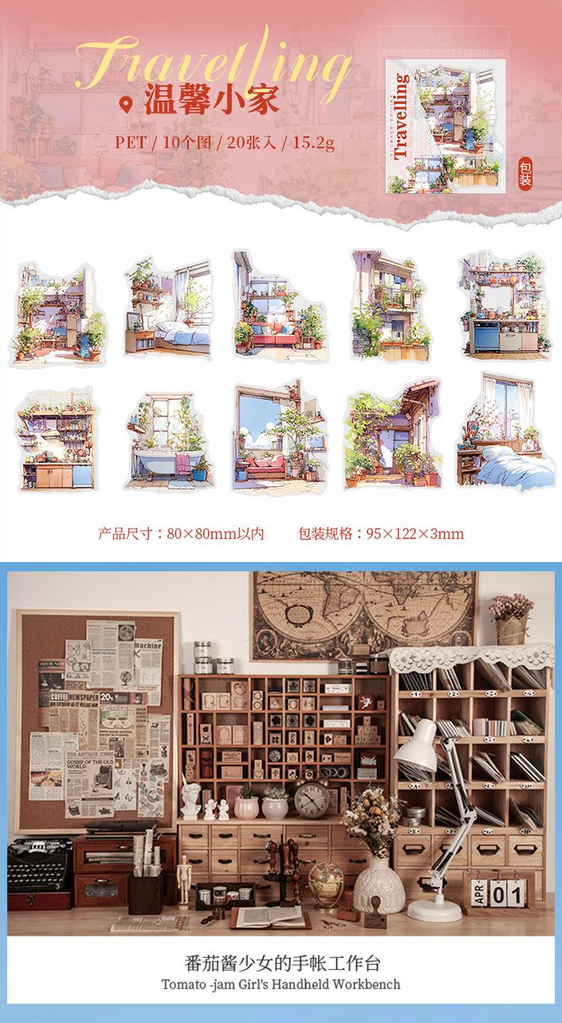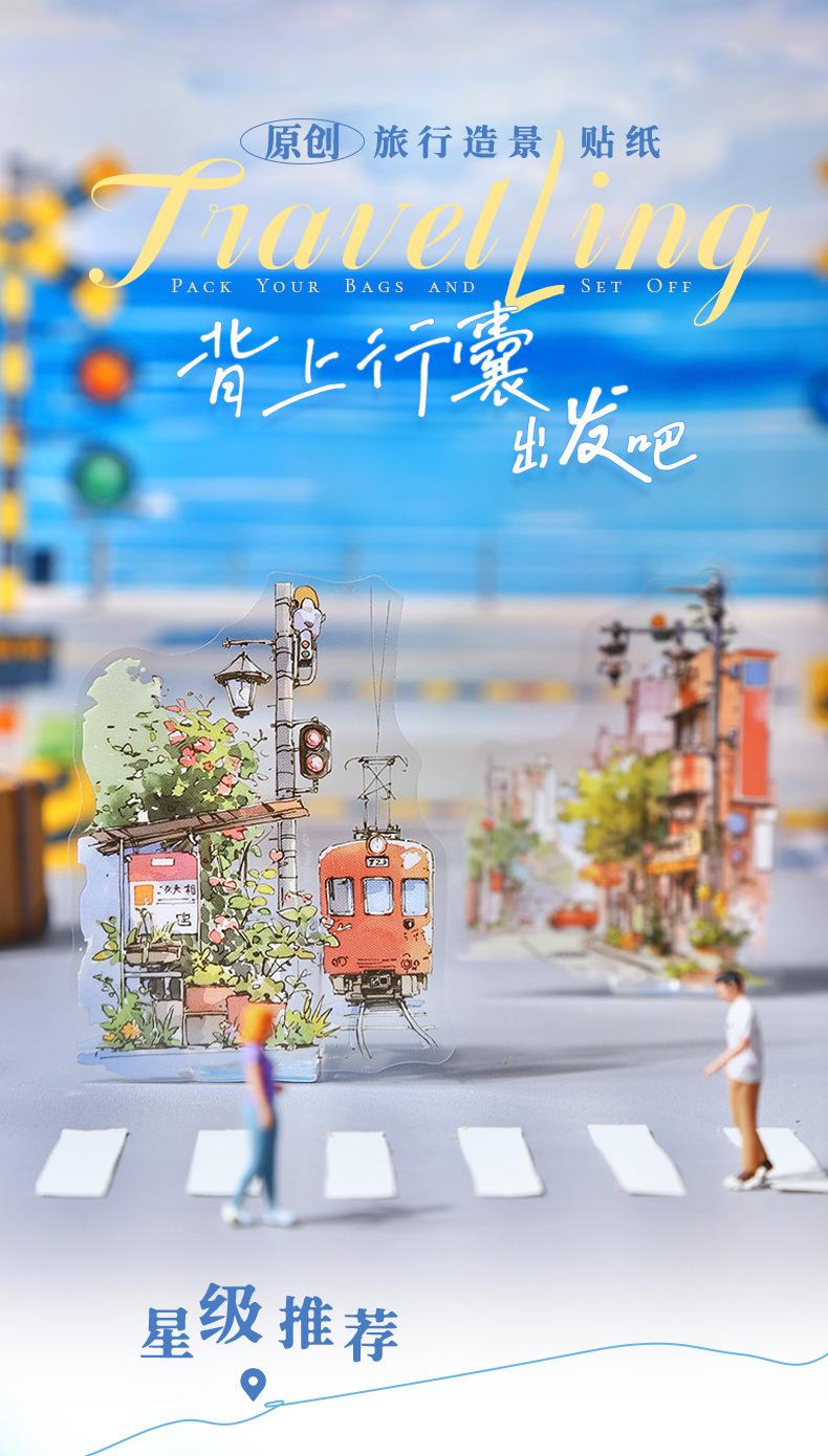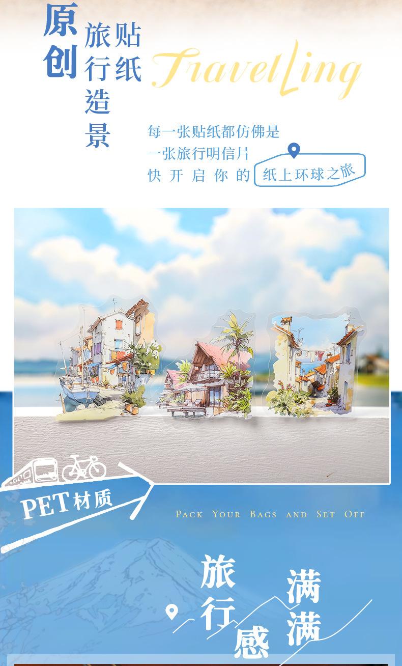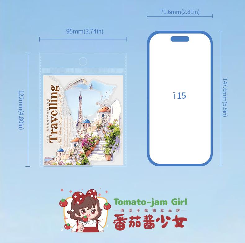 Ketchup PET Pegatina Paisaje Empaca tus maletas y parte Material Impermeable Diario Infantil Collage de Escena DIY