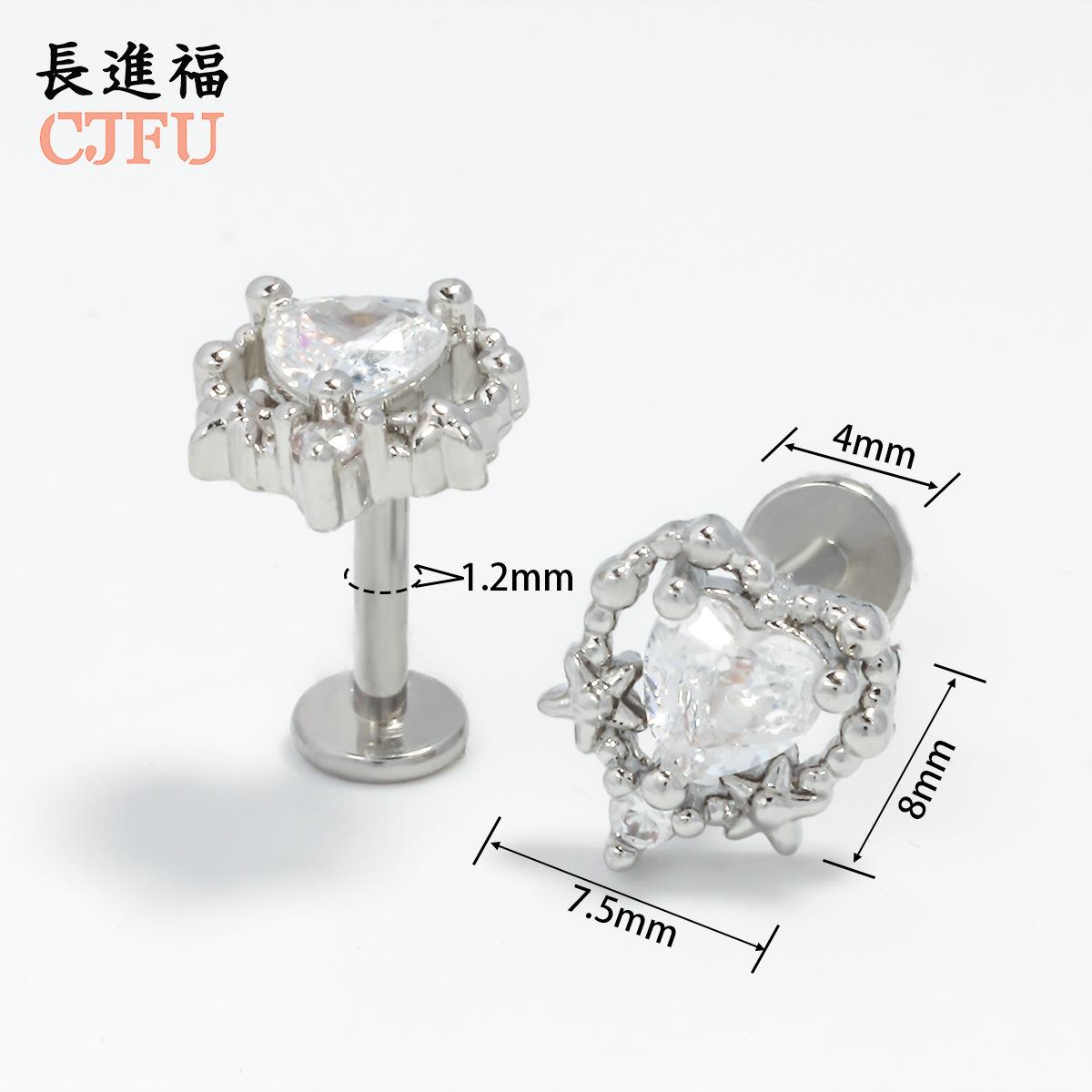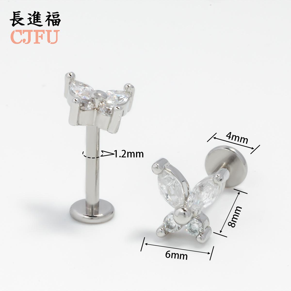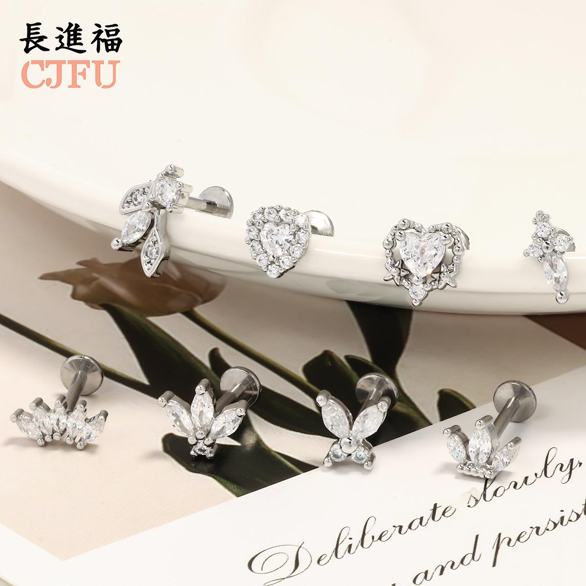 Aretes de Tuerca de Acero Inoxidable con Zircón Corazón Mariposa Moda de Alta Gama Perforación del Cartílago de la Oreja Anillo para el Labio en Espiral Interno Joyería para Perforación