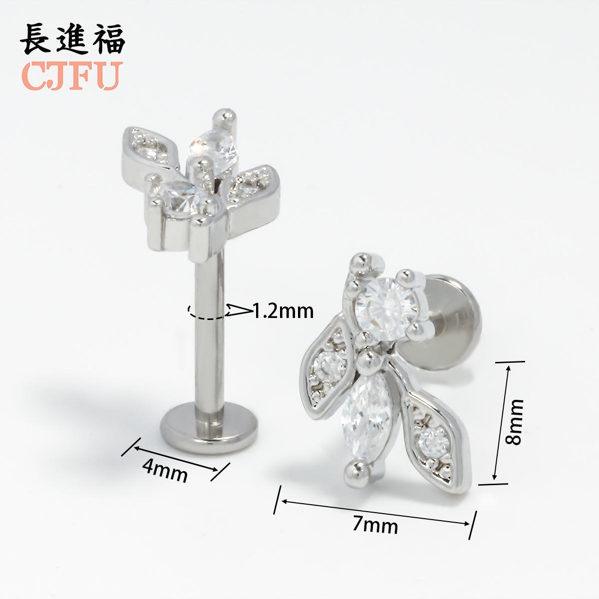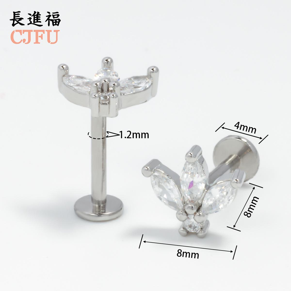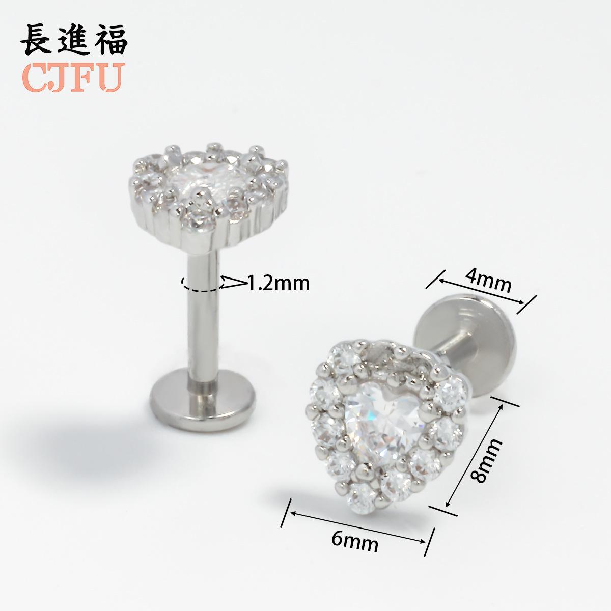 Aretes de Tuerca de Acero Inoxidable con Zircón Corazón Mariposa Moda de Alta Gama Perforación del Cartílago de la Oreja Anillo para el Labio en Espiral Interno Joyería para Perforación