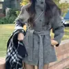 2025 Otoño/Invierno Nuevo Abrigo de Lana Corto Estilo Petite Temperamento Estilo Coreano Estilo Hepburn Abrigo de Lana Mujer Color Sólido