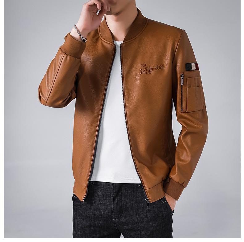 Transfronterizo 2023 otoño e invierno Nuevo chaqueta de cuero para motocicleta europea y americana para hombre cuello alto moda Chaqueta de cuero lavado para hombre hombres
