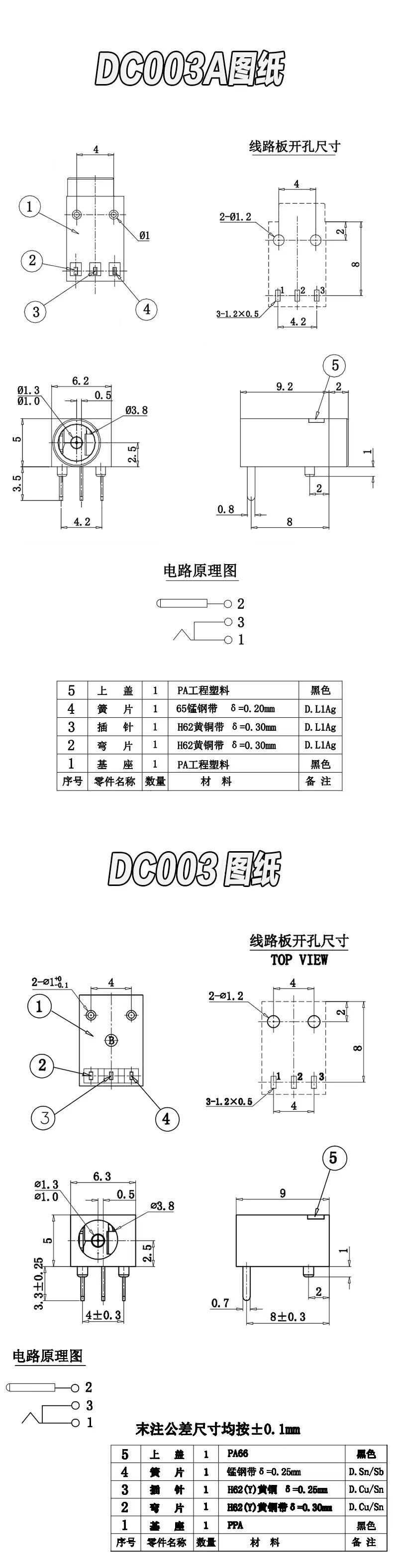 Conector de Alimentación CC Dc003A 3.5*1.3mm Conector de Alimentación CC Conector Directo de Tres Pines Resistencia a Alta Temperatura