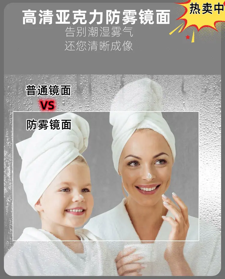 Espejo Acrílico Plateado Personalizado Antivaho Lente Antivaho Panel Espejo Cosmético Antivaho Espejo de Baño Desempañante Espejo Bucal