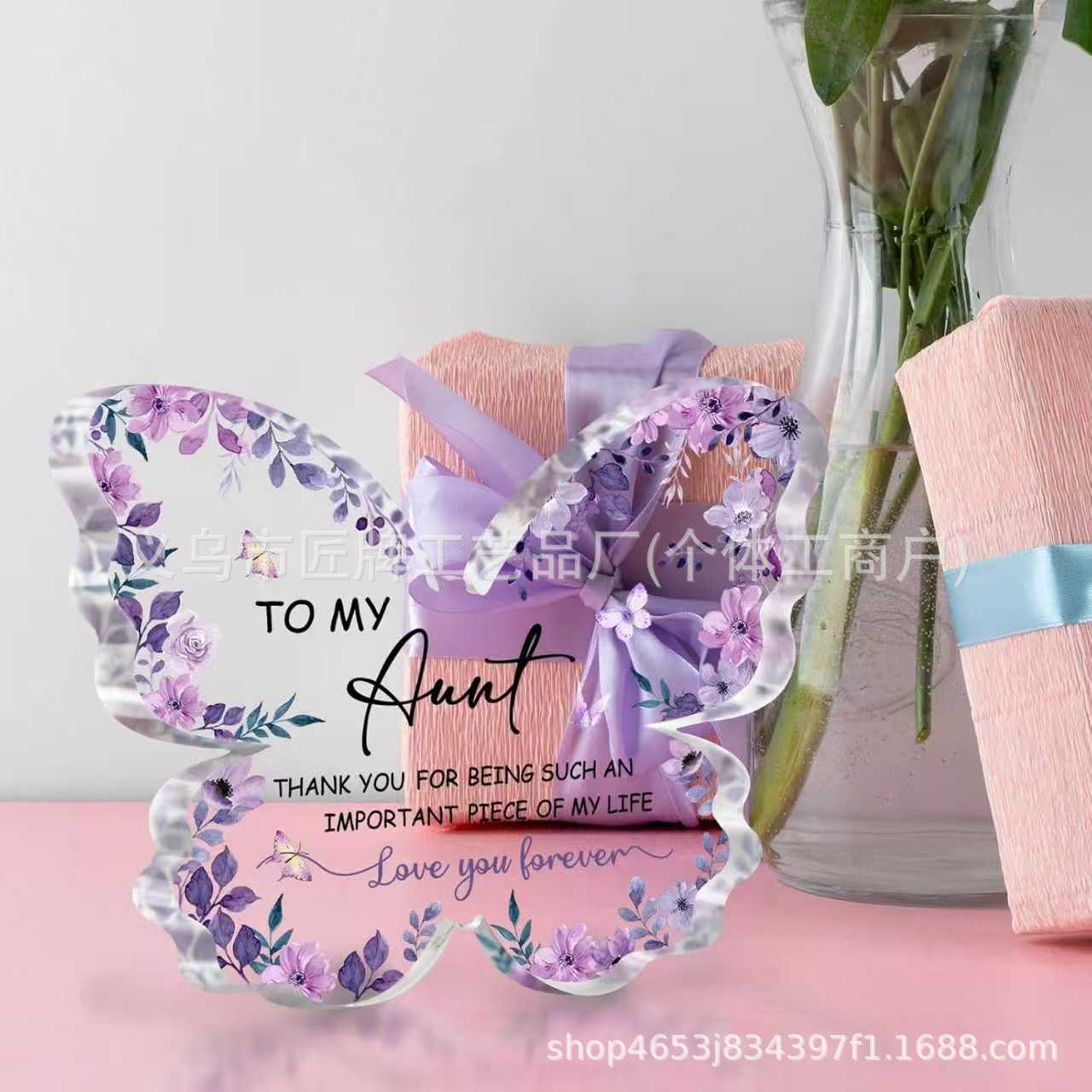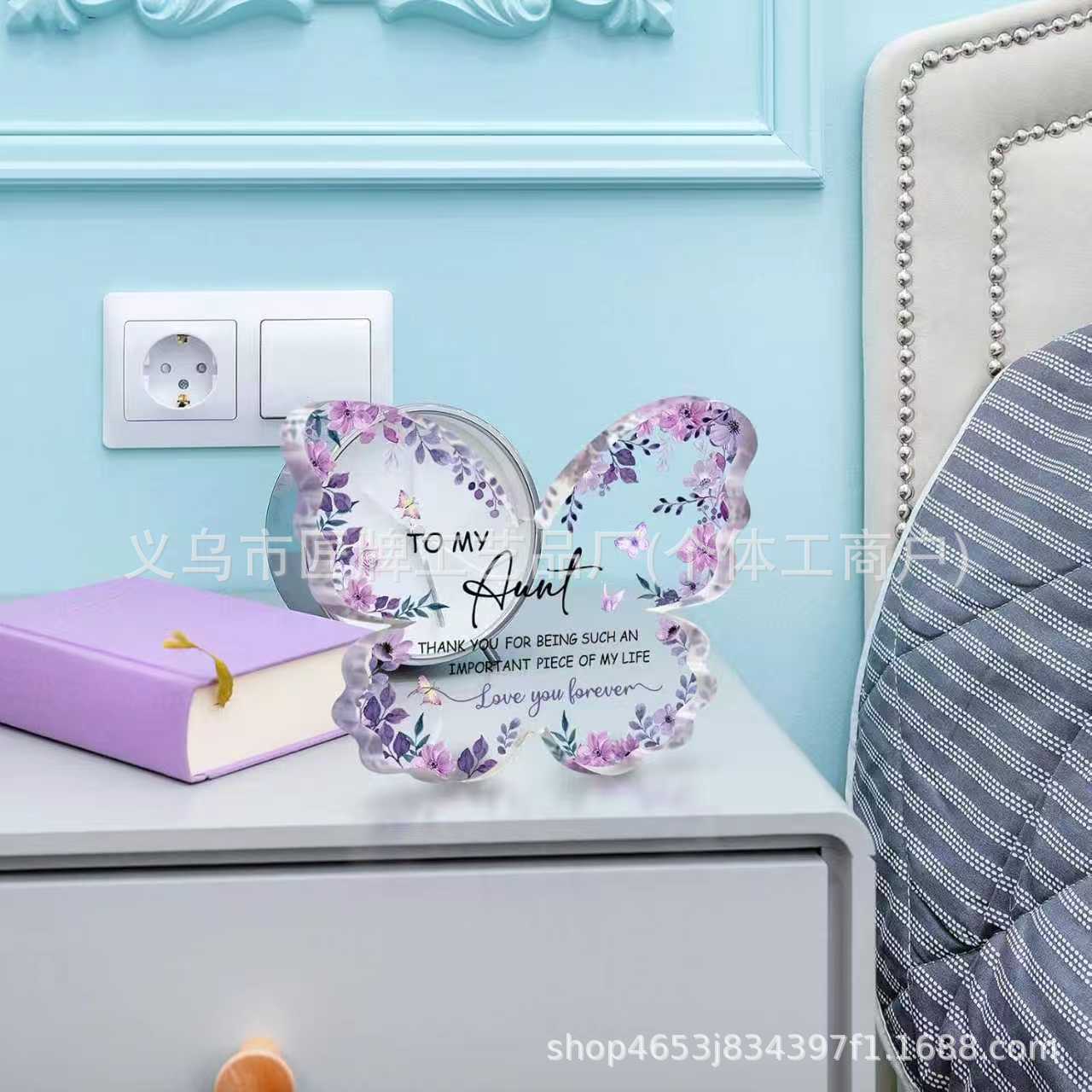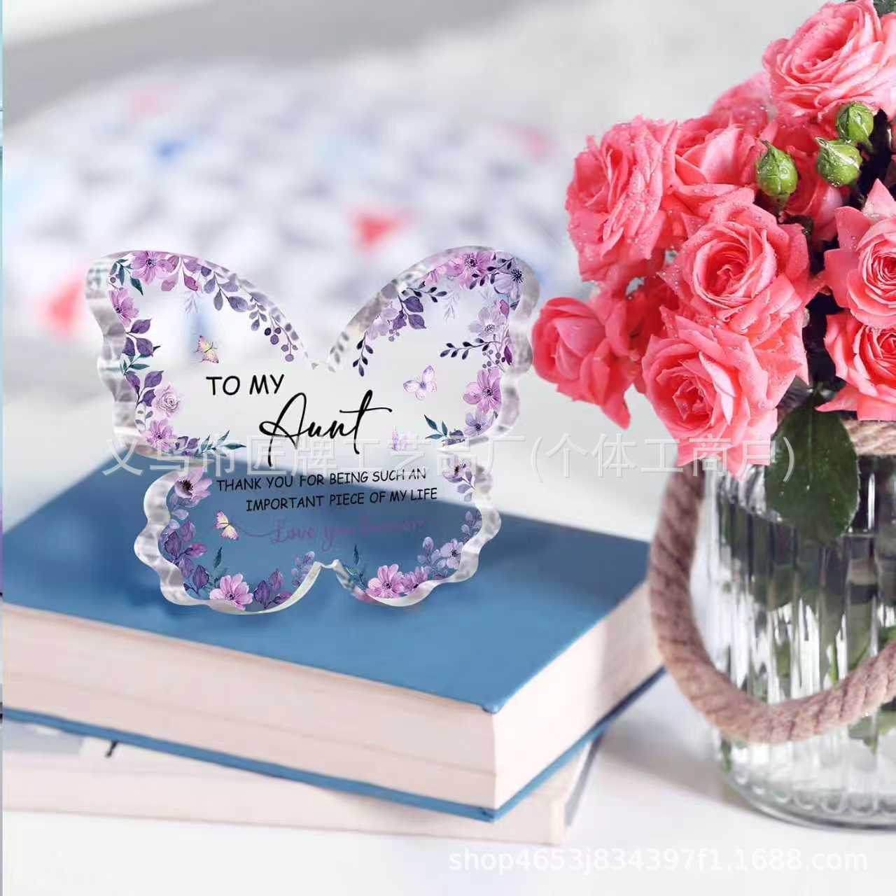 Transfronterizo Nuevo Día de San Valentín Mariposa Acrílico Transparente Día de la Madre Día del Padre Adornos de Escritorio Artesanales
